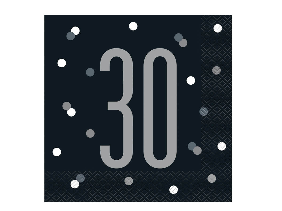 Harmincadik születésnapi fekete szalvéta - 33 cm - 16 db.