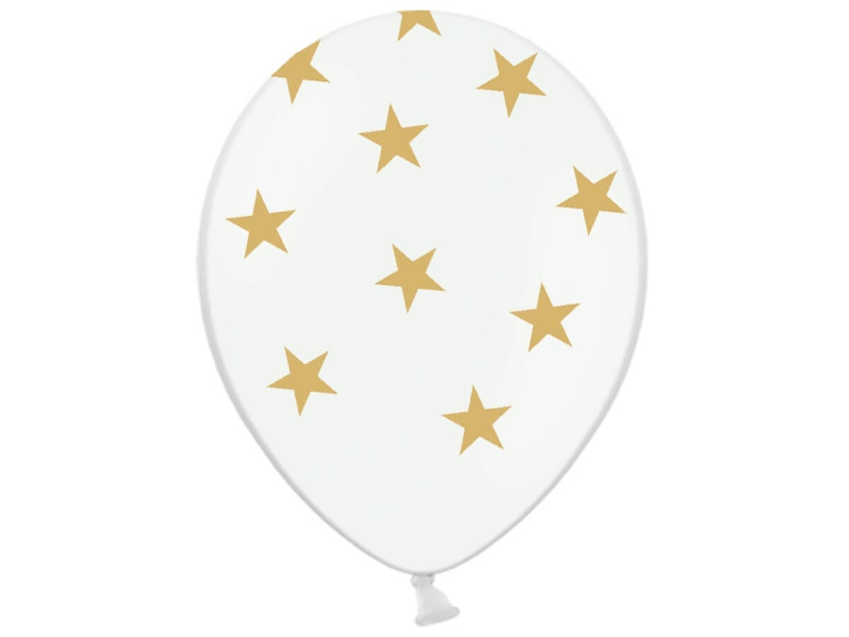 Pasztell fehér lufi arany csillagokkal - 30 cm - 6 db.