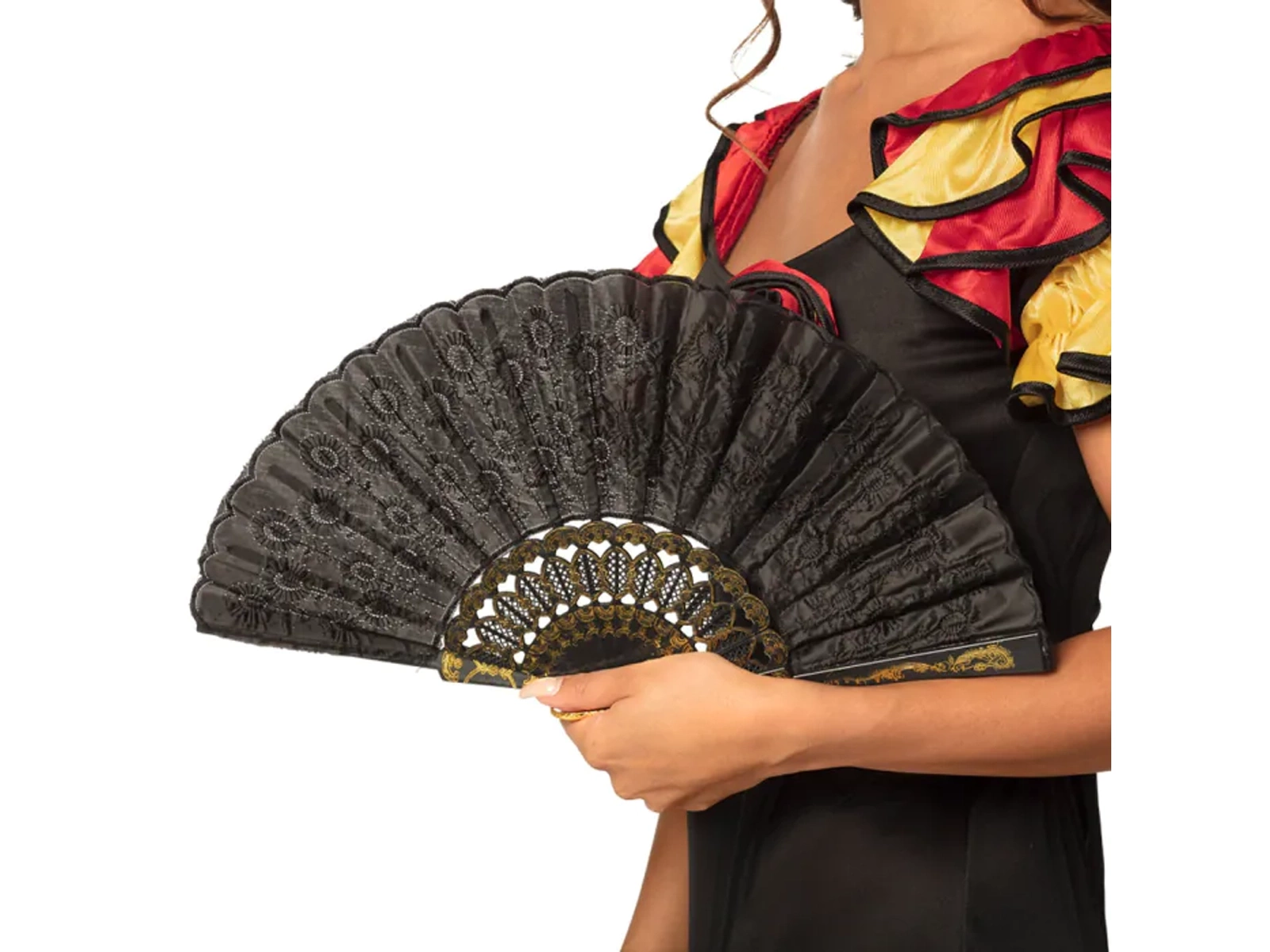 Fekete legyező arany díszítéssel - 1 db.