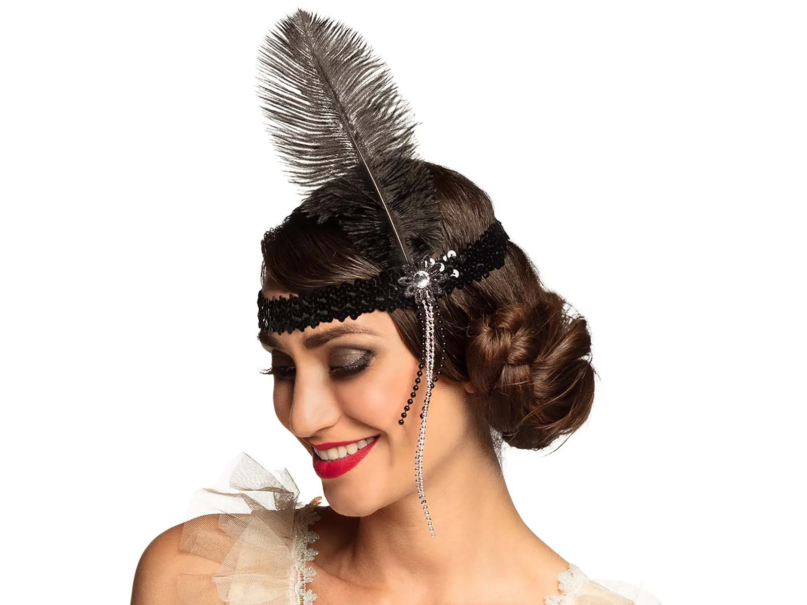 De ez még nem minden. Retro fekete toll és gyöngyös fejpántunk nemcsak szép, hanem praktikus is. Az elasztikus pántnak köszönhetően a fejpánt tökéletesen alkalmazkodik bármilyen alakú és méretű fejhez, így egész nap kényelmes viseletet biztosít.