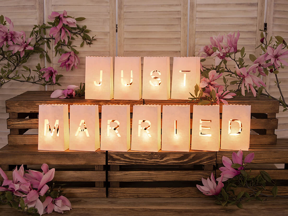Just Married gyertyás táskás lámpás - 11,5 x 19 x 11 cm - 11 db.