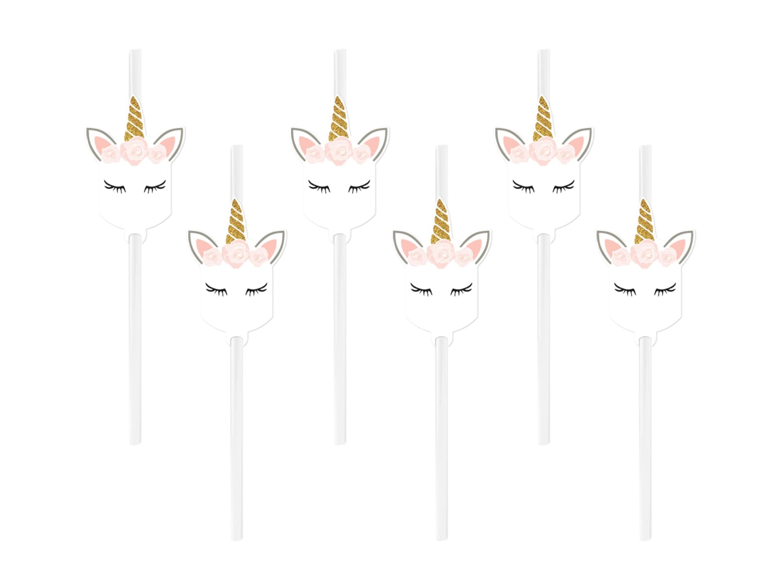 Gyönyörű egyszarvú születésnapi szívószálak - 6 db.