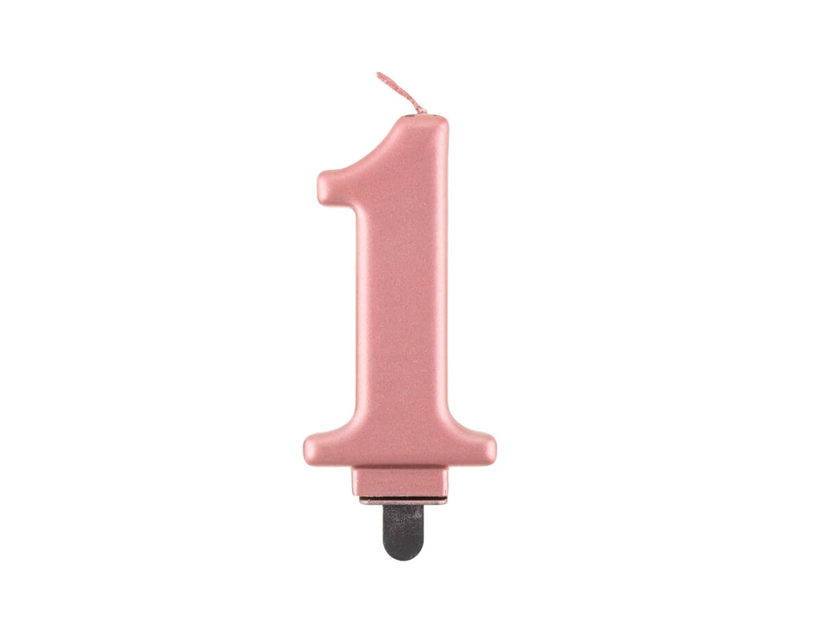 • 1. számú fém gyertya rózsaarany színben, első születésnapra és több másra is.