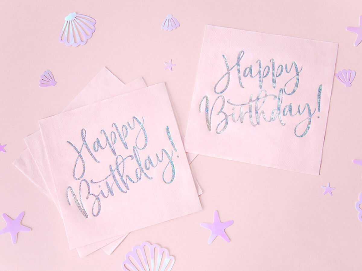 Az élénk rózsaszín szín az öröm és a boldogság szimbóluma, a holografikus Happy Birthday felirat pedig ünnepi hangulatot kölcsönöz. Ezek a szalvéták tökéletes választás bármilyen születésnapra - a kis hercegnői partitól kezdve a My Little Pony stílusú partin át a Hawaii Luau stílusú felnőtt születésnapi partiig.