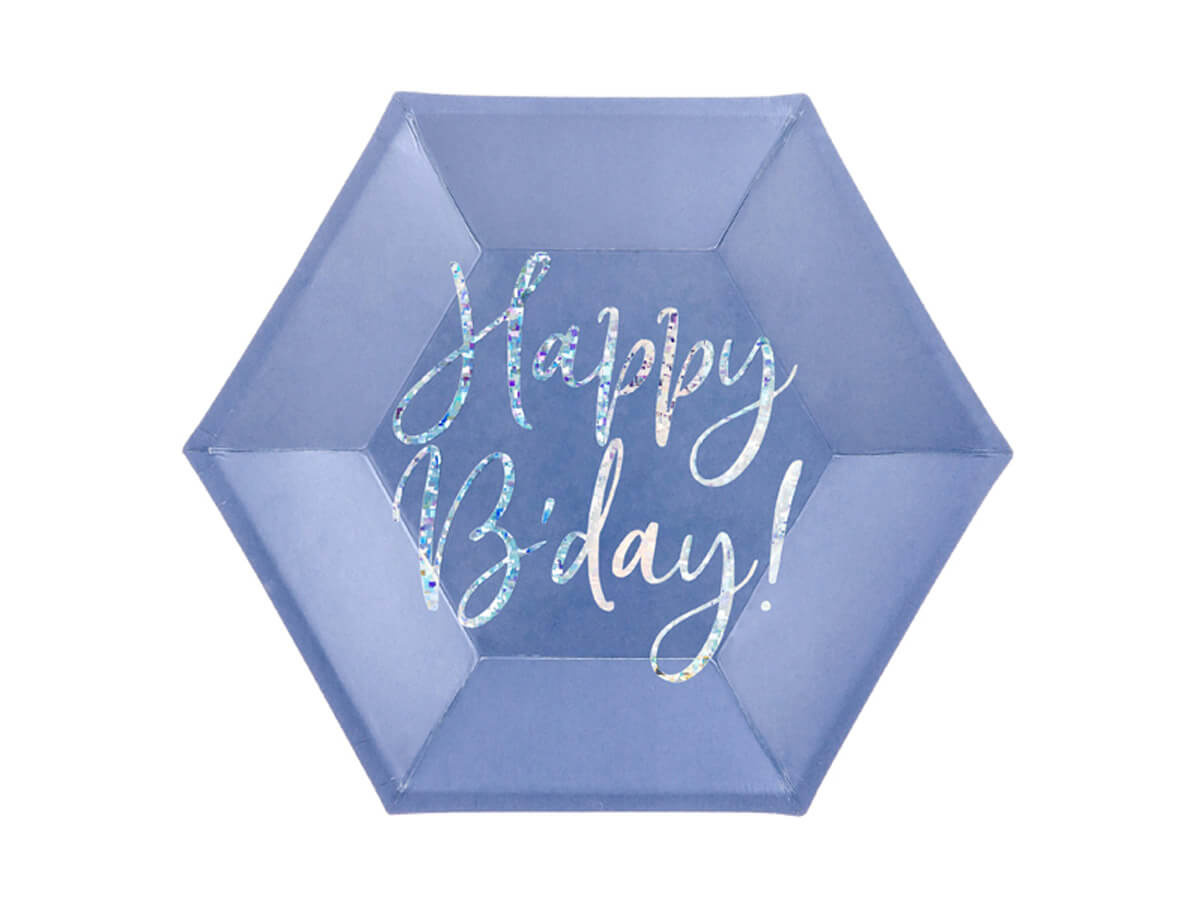 Születésnapi tányérok tengerészkék Happy B'day - 20 cm - 6 db.