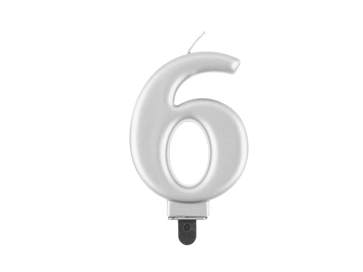 Ezüst fém számgyertya - 6 - hat - hat