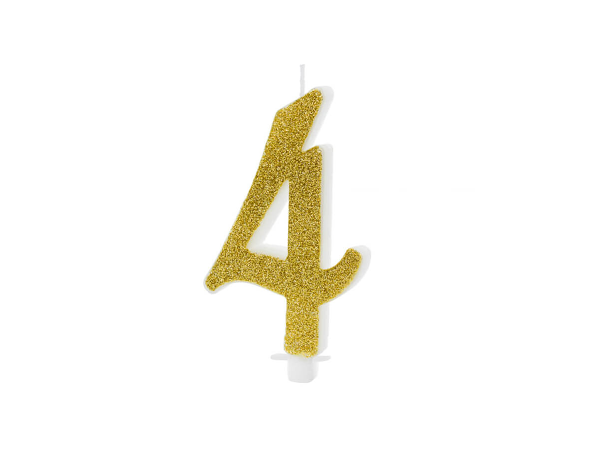 • Négyes számú születésnapi gyertya arany színben, csillogással.
