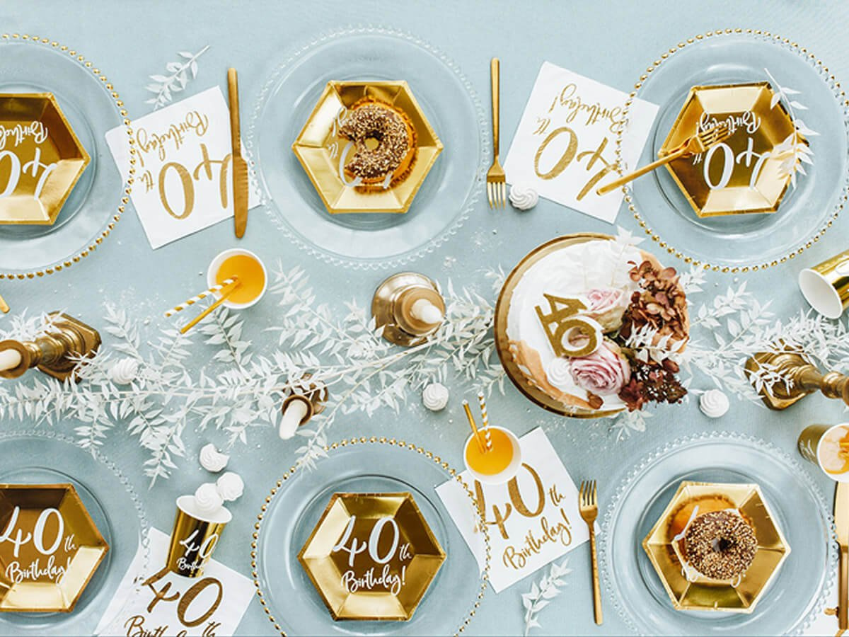Az arany szín elegáns hatást kölcsönöz, míg a fehér "40. születésnap" nyomtatással!" hangsúlyozza e nap egyediségét.