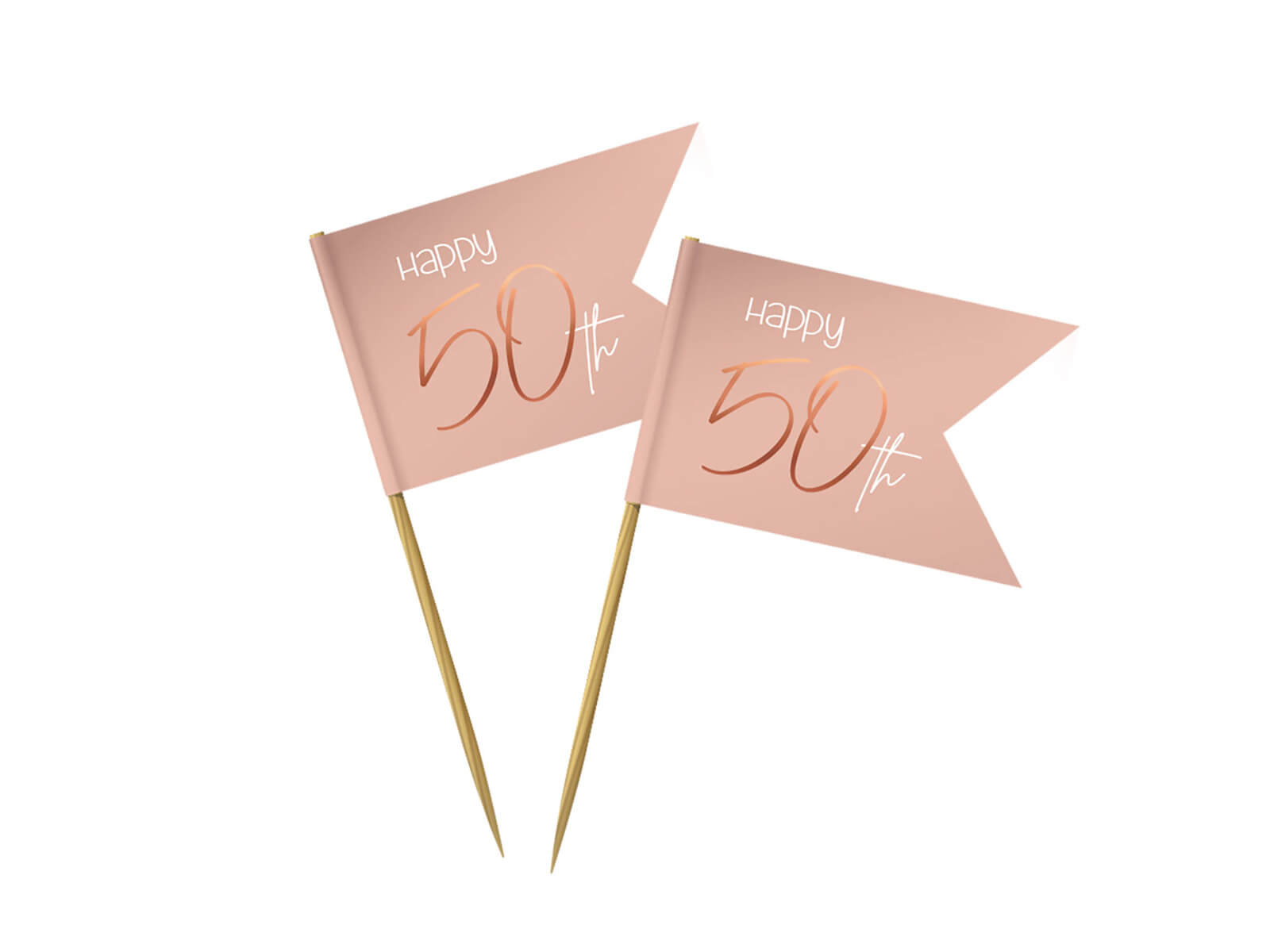 • Zászlórúd dekoráció az Elegant Lush Blush sorozatból rózsaszínben, Happy 50th felirattal, torta vagy muffin dekoráció ötvenedik születésnapi partira.