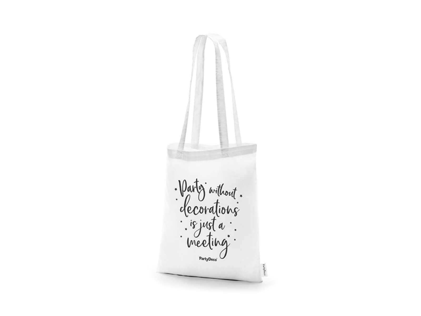• Bevásárlótáska pamutból készült fehér színben, fekete felirattal A díszítés nélküli parti csak egy találkozó.