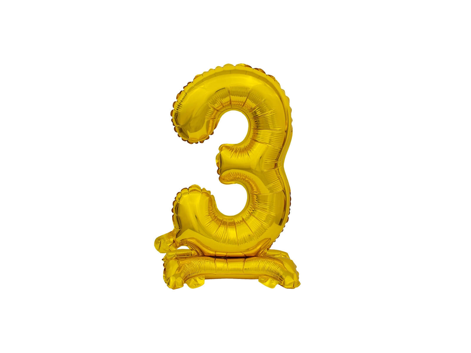Fólia lufi állva, 3-as szám arany - 38 cm