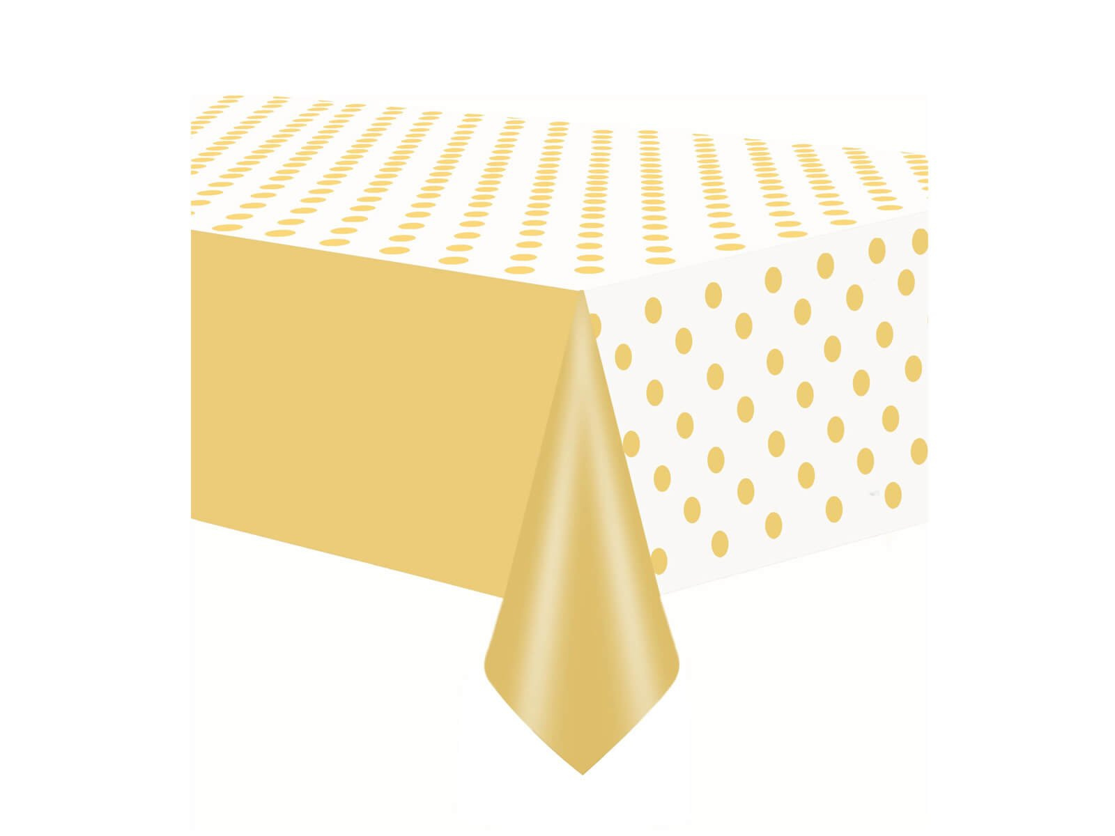 Születésnapi terítő fehér arany pöttyökkel - 137 x 274 cm - 1 db.