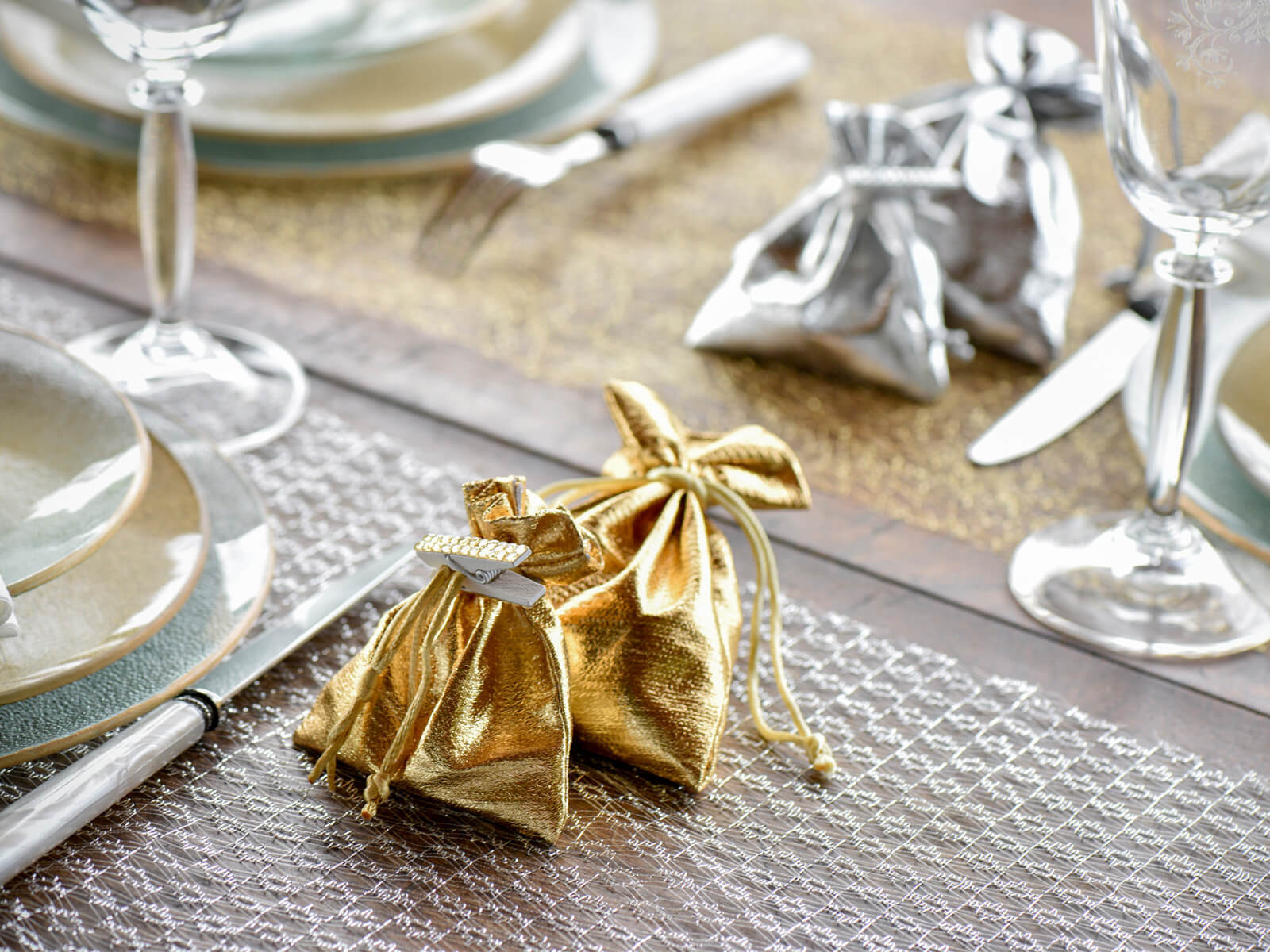 Ezüst táskák vendégeknek - 8 x 10 cm - 6 db.