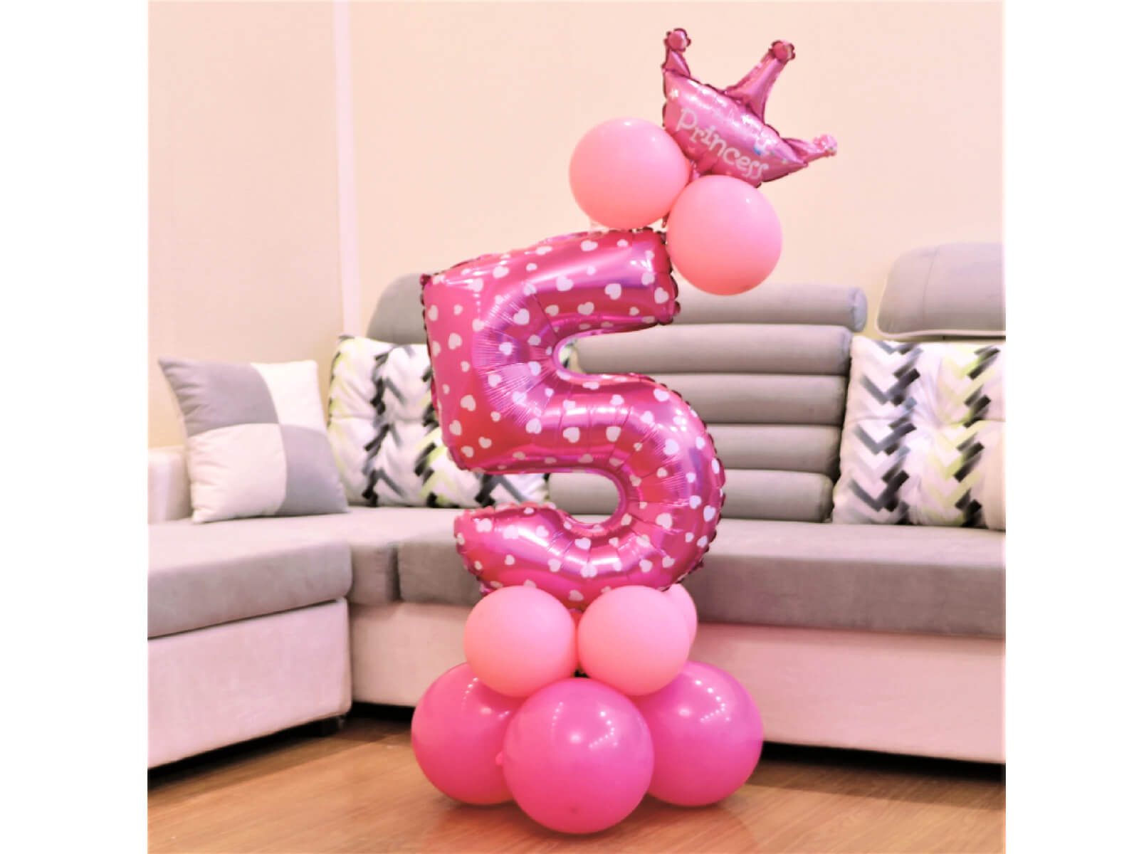 Készlet lufik az ötös számmal rózsaszínben - 15 db.