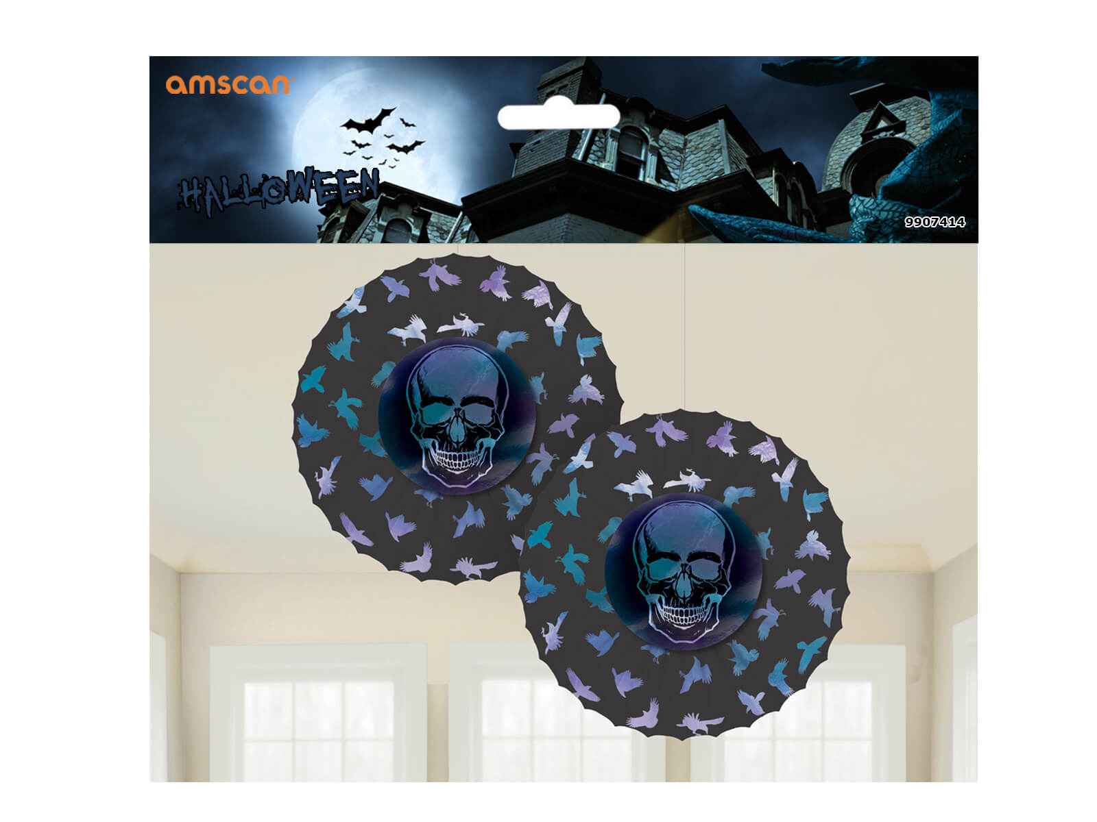 Akasztós dekoráció koponyával és hollókkal - 2 db.