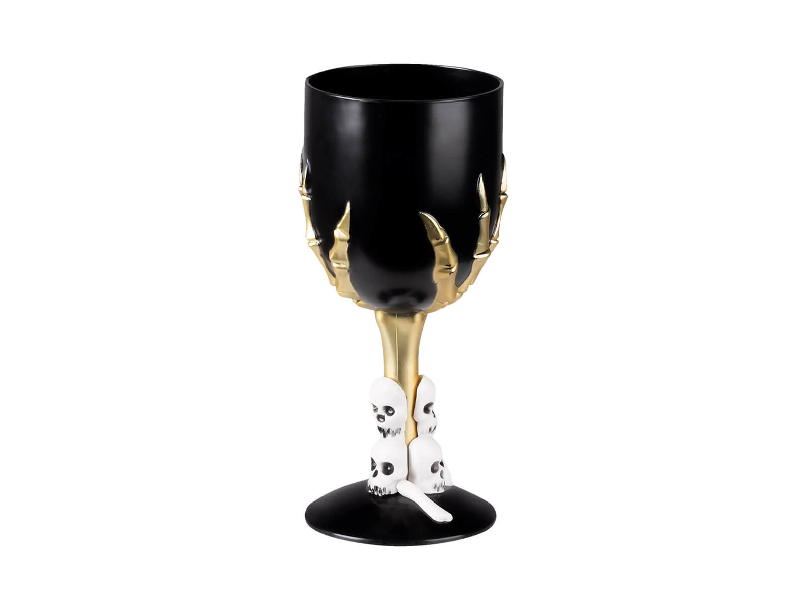 Bemutatunk egy szokatlan gótikus fekete kelyhet koponyákkal, hogy egyedi hangulatot kölcsönözzön a partinak! Ez a műanyag borospohár nemcsak stílusos, hanem praktikus is, 250 ml-es űrtartalmának köszönhetően. Tökéletes dekoráció Halloween vagy más tematikus partikhoz.