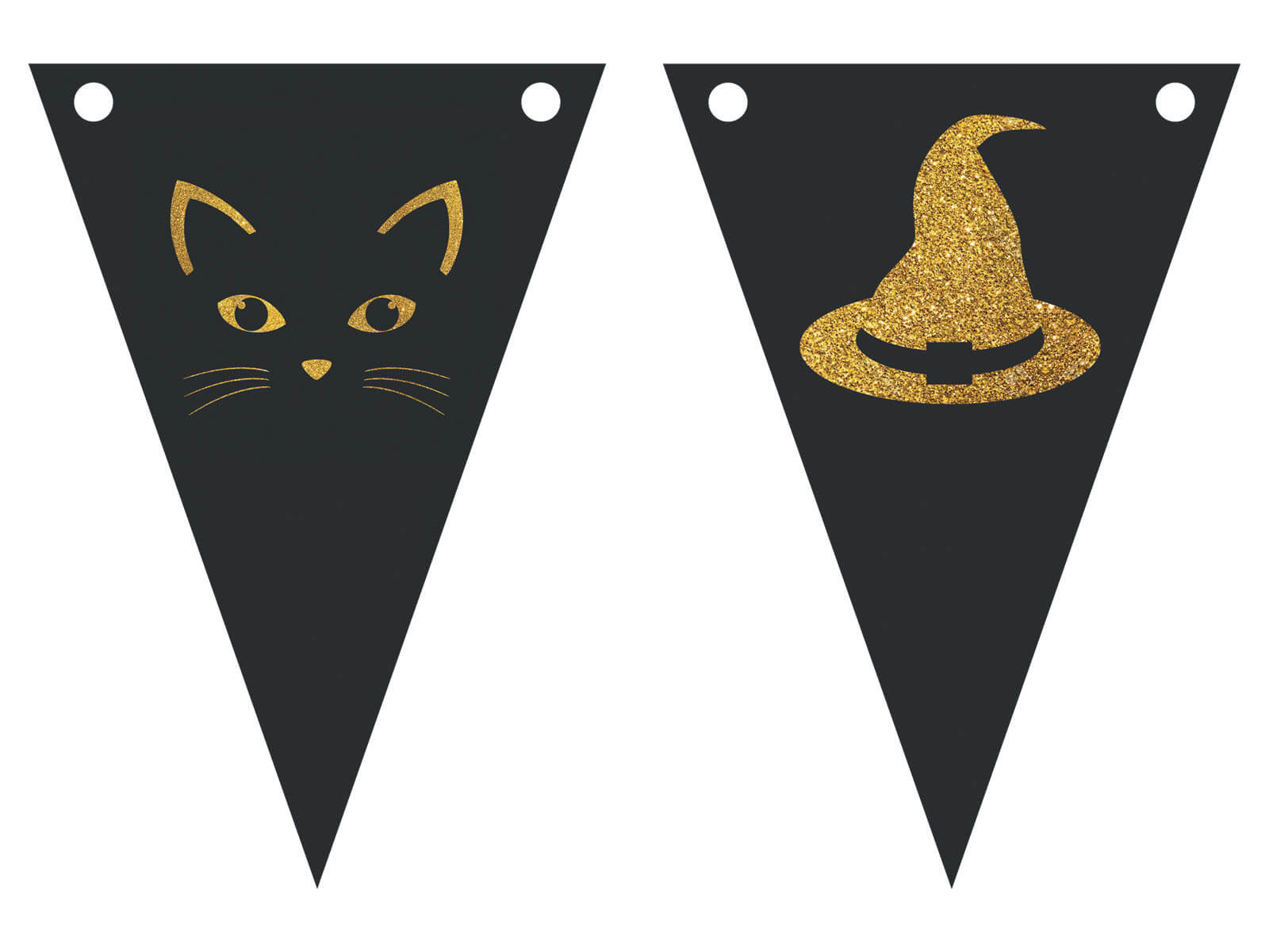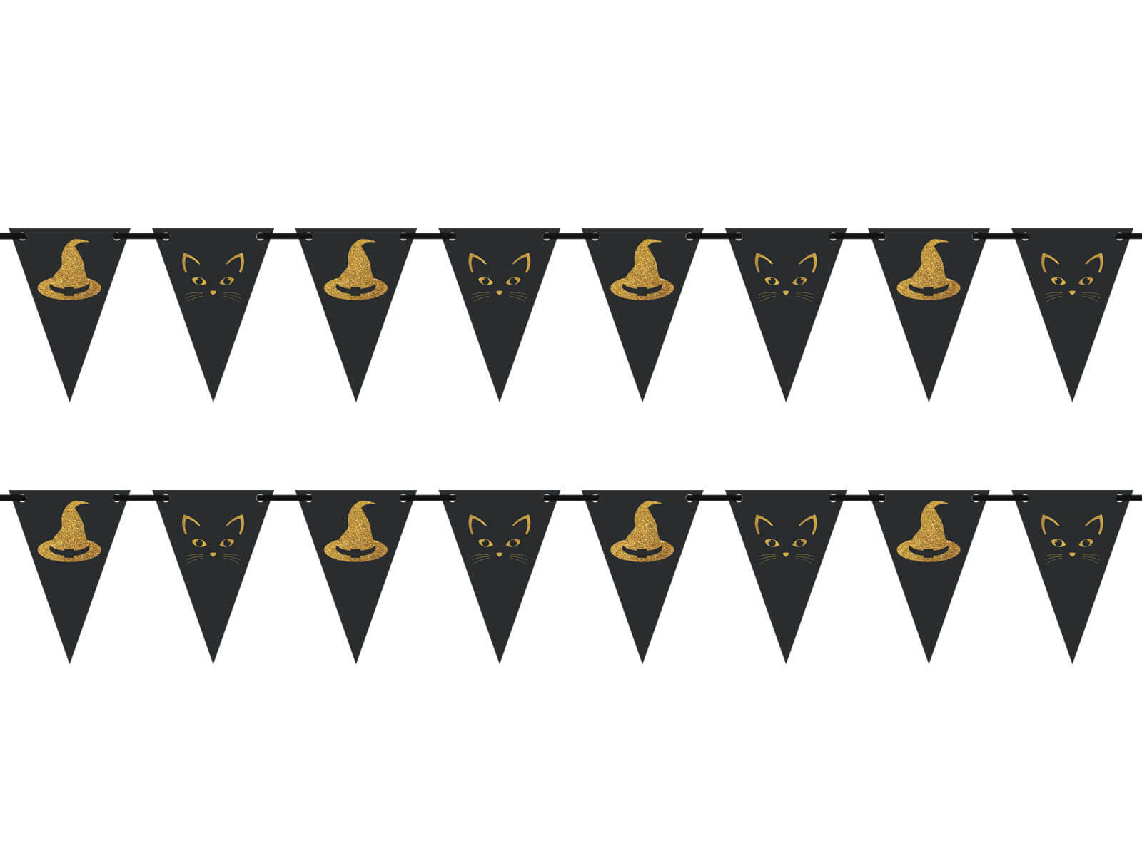 Alakítsa át Halloween ünnepségeit felejthetetlen élménnyé a mi halloween bannerrel a következő motívummal A boszorkány és a macska. Ez a bájos füzér a következőkből áll 14 zászló, egyenként 15 cm magasak, amelyek egy elegáns fekete szalaggal kombinálva varázslatos hangulatot teremtenek bármilyen térben. A szalag hossza olyan hosszú, mint a 500 cm, amely lehetővé teszi a nagy terek díszítését is.