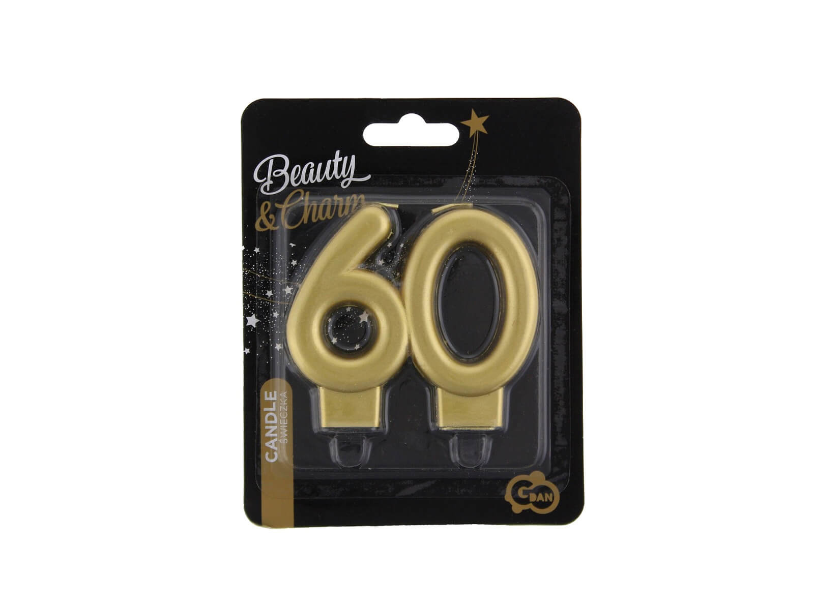 • "60" gyertya arany színben, ideális a hatvanadik születésnapi partira.