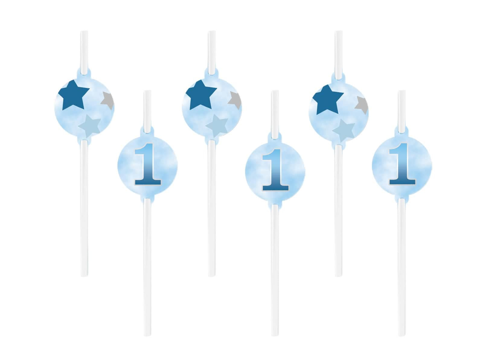 Szívószálak a szülinapi bulira Csillagok kék - 6 db.