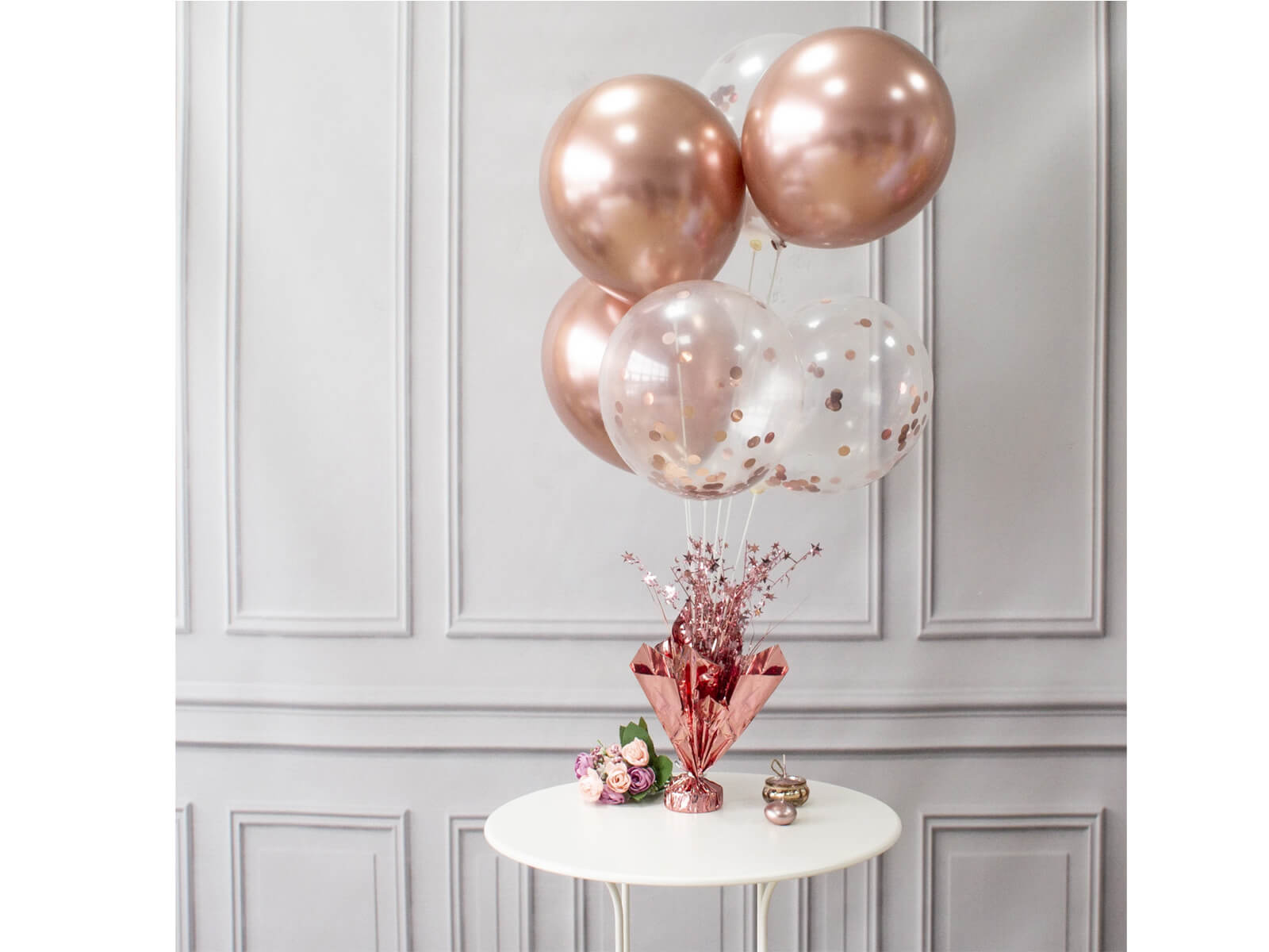 Ragaszkodó lufi állvány rózsaarany díszítéssel - 1 db.