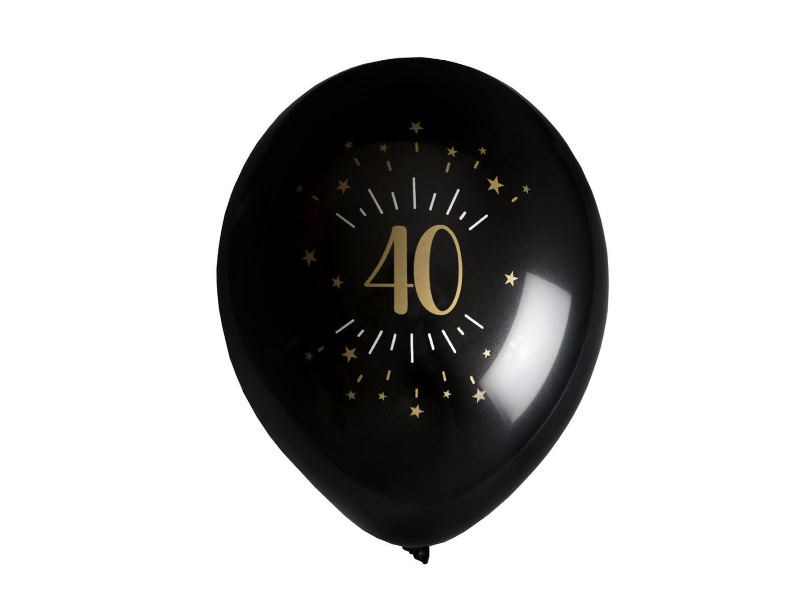 • Fekete latex születésnapi lufik arany 40-es számmal a Sparkling készletből.