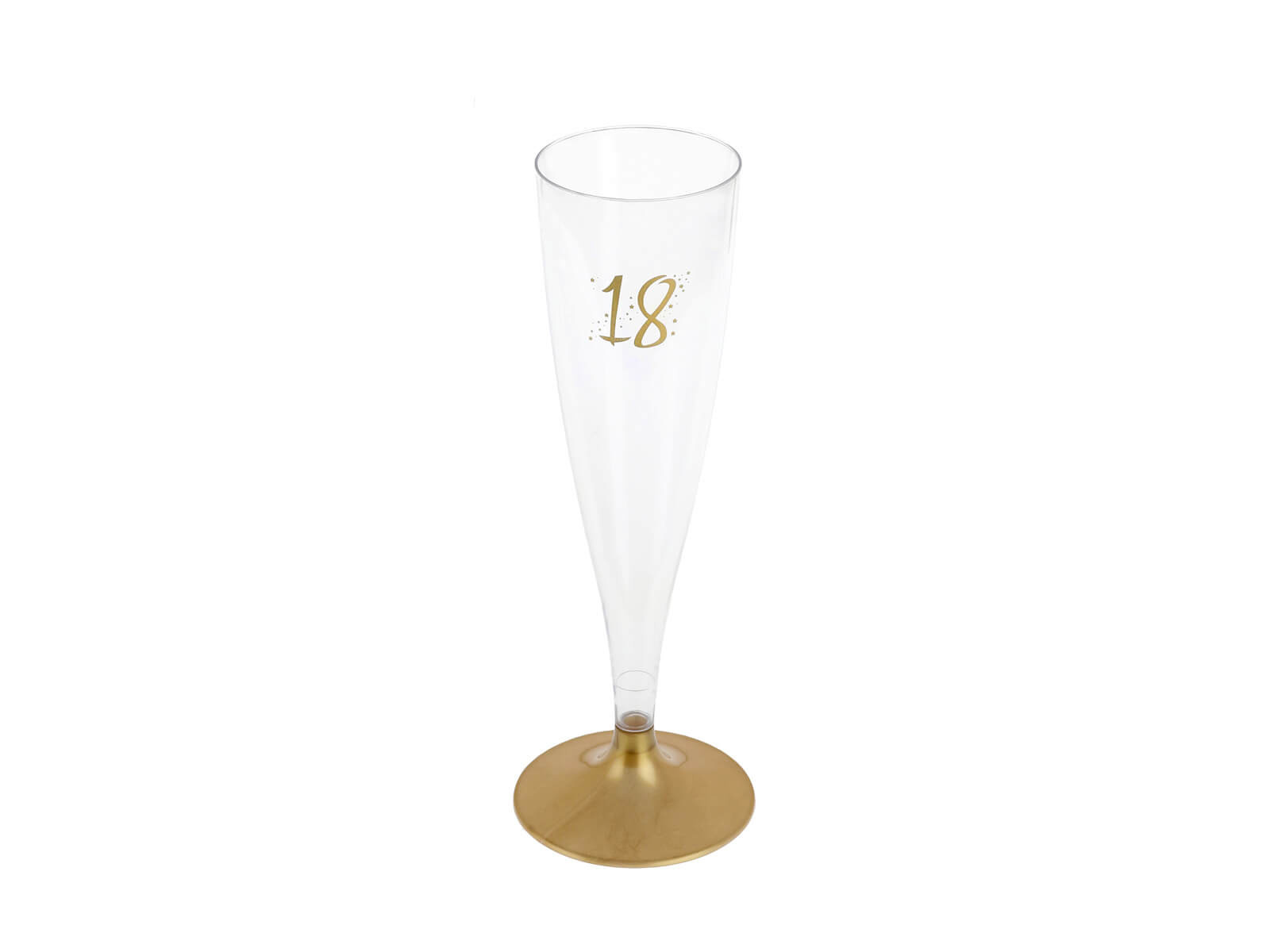 Poharaink átlátszóak és a 18-as szám finom aranynyomásával rendelkeznek, így tökéletes asztali dekorációvá válnak. Polisztirolból történő gyártásuk garantálja a tartósságot és a véletlen esésekkel szembeni ellenállást. Így élvezheti a buli vidám hangulatát anélkül, hogy aggódnia kellene a károk miatt.