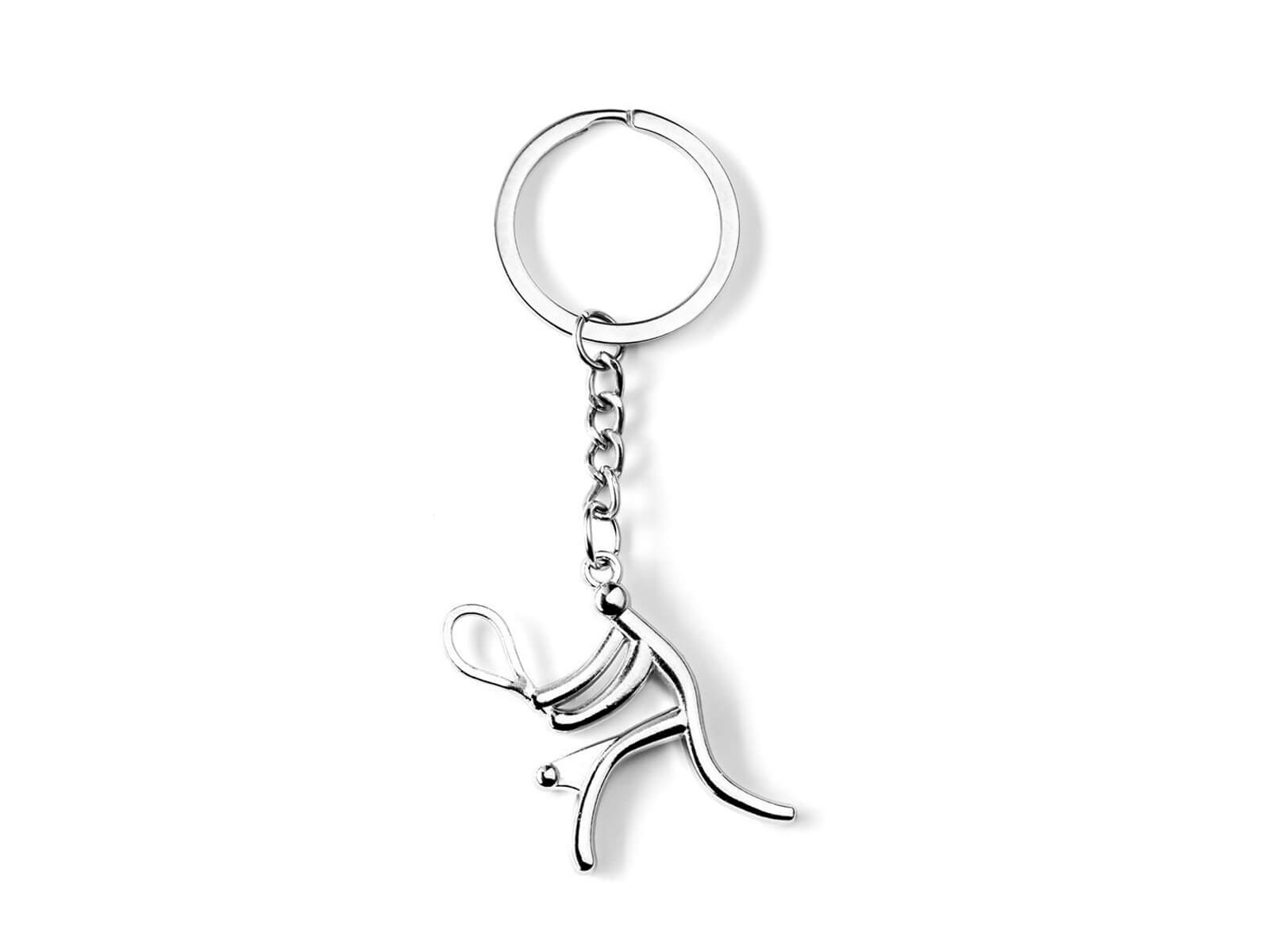 • Kulcstartó vagy kulcstartó egy teniszező alakjában, aki egy labdát pattogtat egy ütővel.