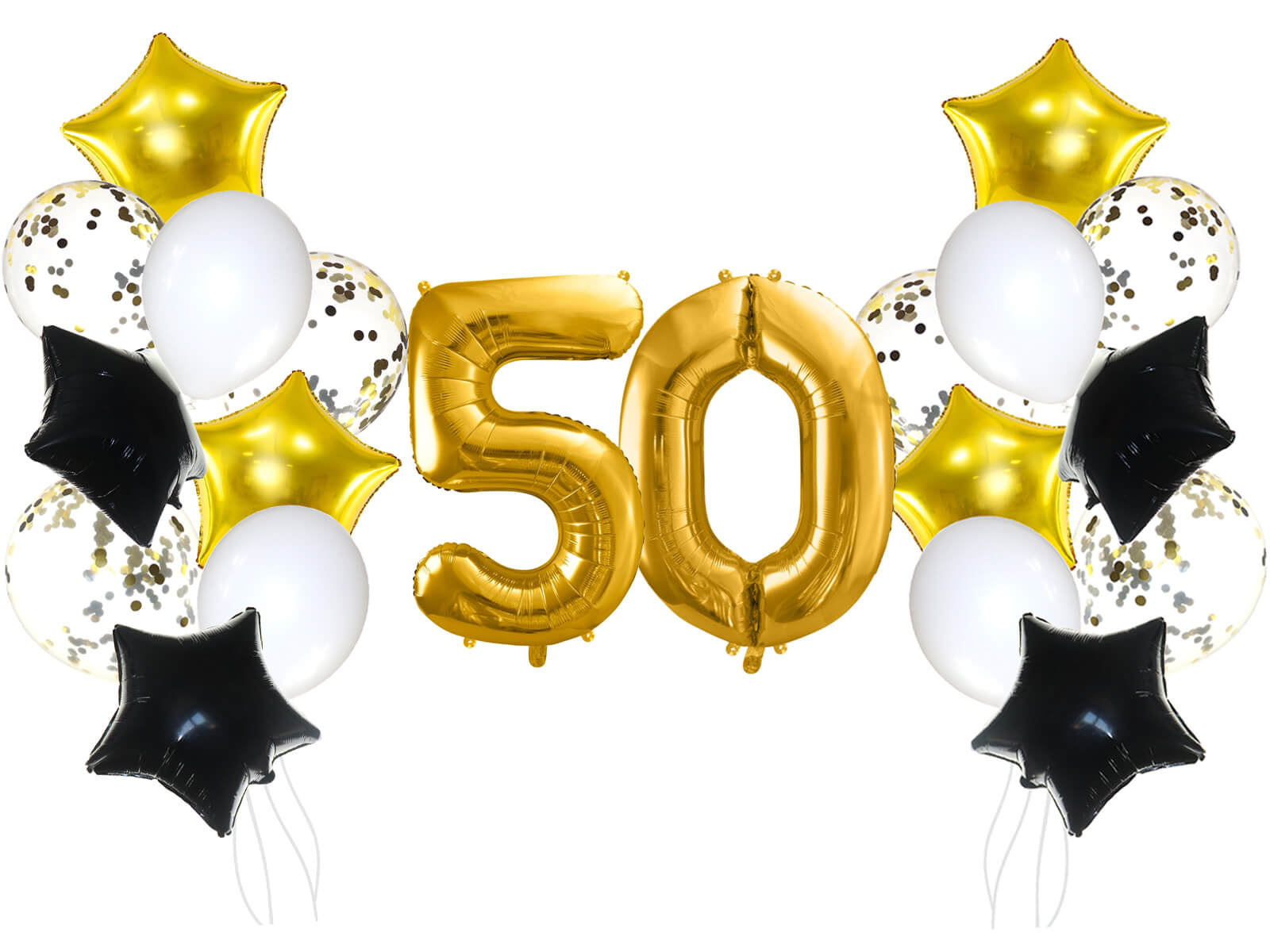 50. születésnapi lufi készlet arany és fekete - 21 db.