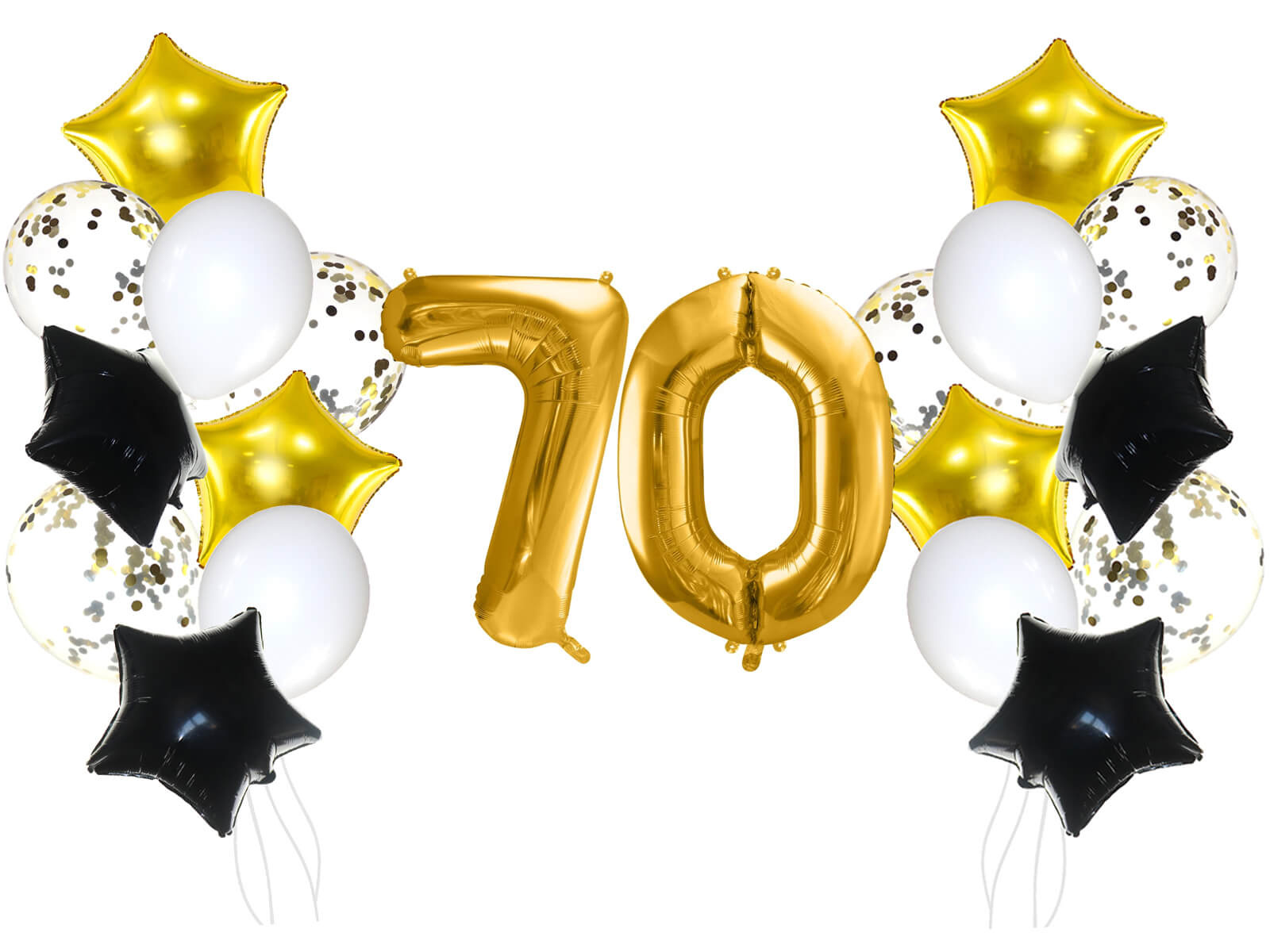 Léggömbkészlet hetvenedik születésnapra arany és fekete - 21 db.