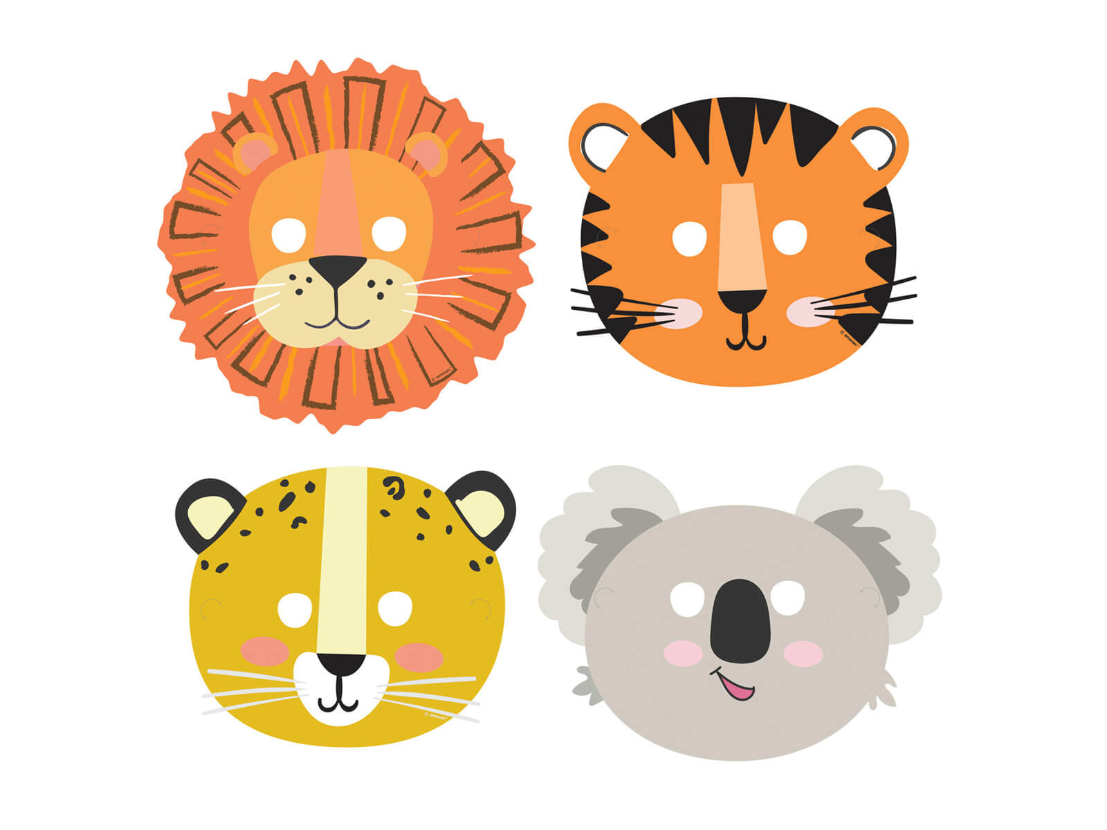 A Get Wild készlet papírmaszkjai tökéletes választás a gyermekszülinapi partikra. A csomagban akár 8 egyedi maszkot is találsz, amelyek kedvenc vadállataidat ábrázolják: