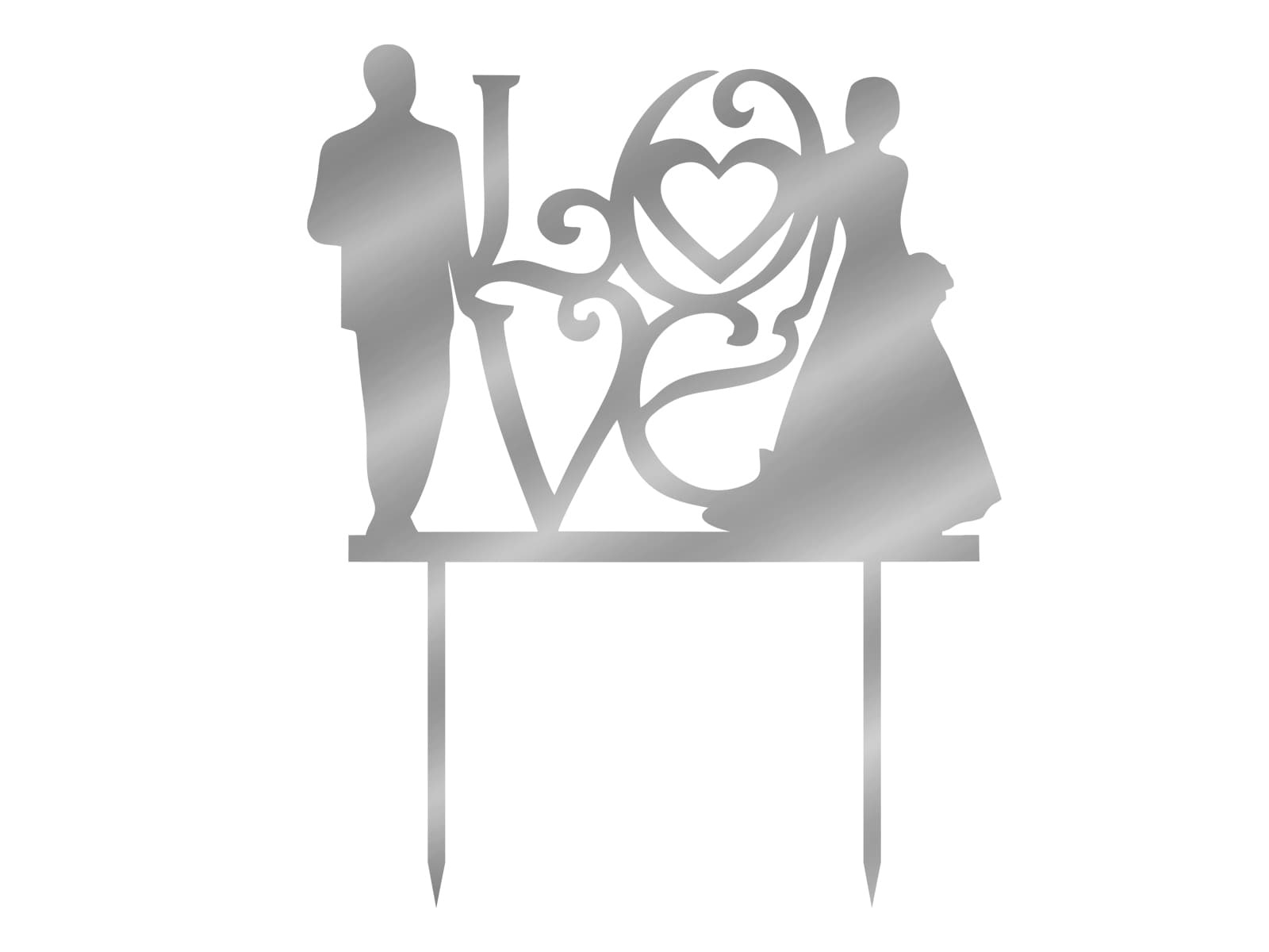 Tükrözött plexiüveg ezüst tortadísz Szerelem a menyasszonnyal és a vőlegénnyel - 16,5 cm