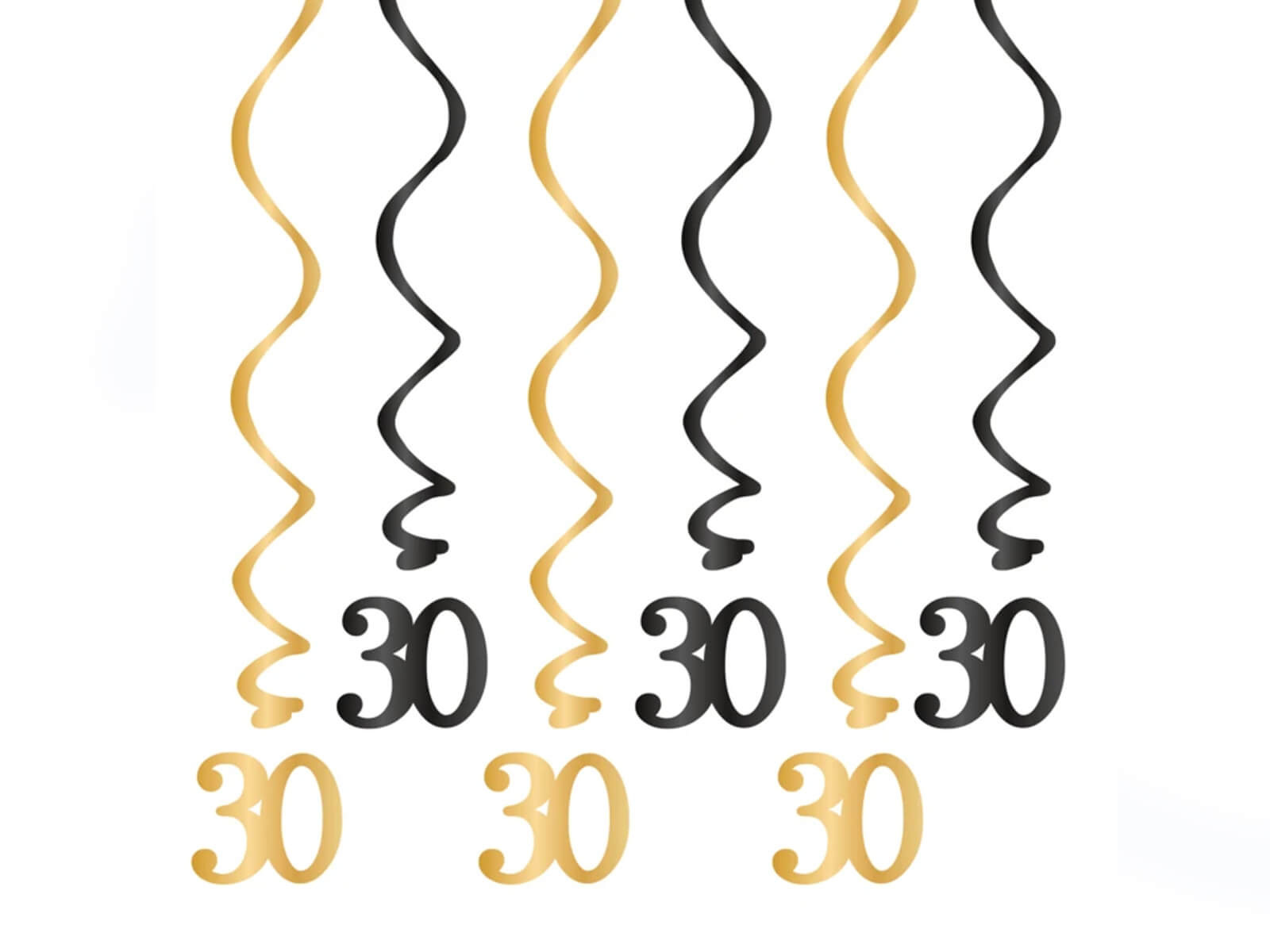Fekete és arany függődíszek 30-as számmal Fekete és arany függők