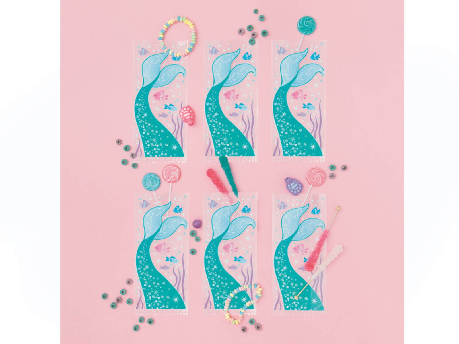 Ezek a sellőmotívumos cukorkás zacskók biztosan feldobják a hangulatot! A 13cm x 28cm méretű celofánzacskók 20 darabot tartalmaznak csomagonként, és tökéletes ajándékot jelentenek minden korosztály számára. Töltse meg őket édességekkel, finomságokkal és házi készítésű ajándékokkal - csak a képzelete szab határt!