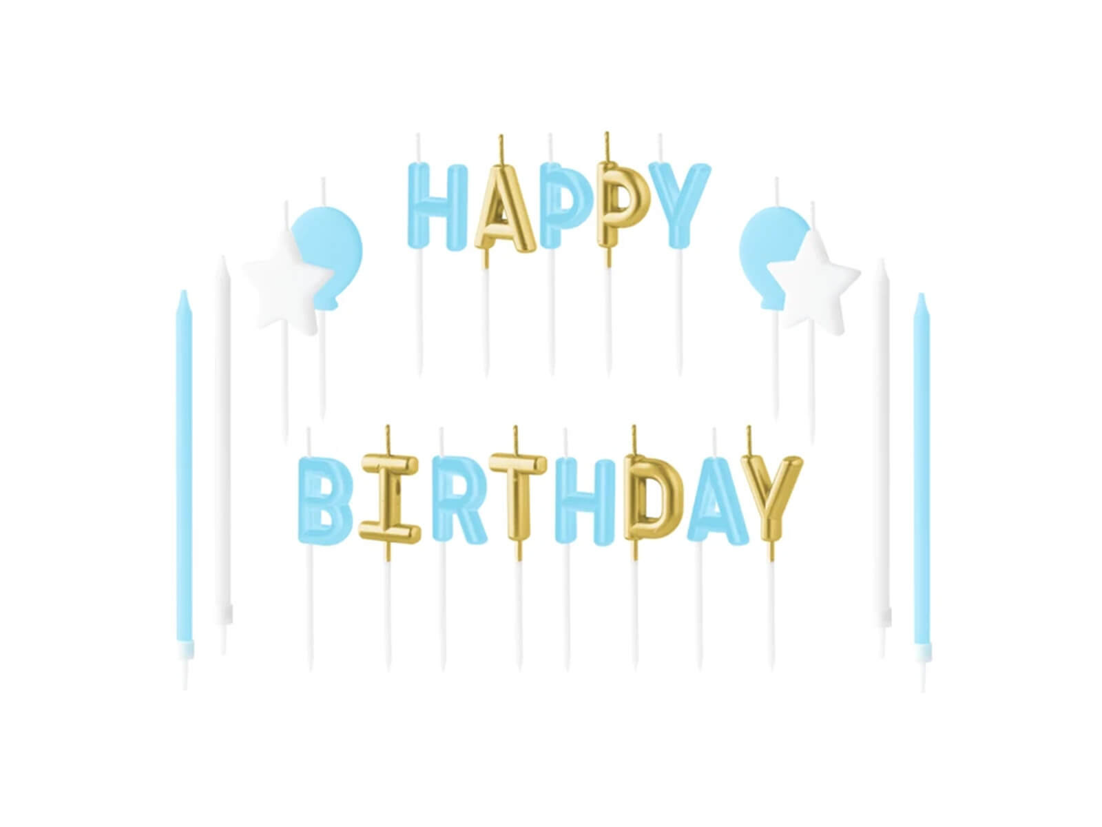 Boldog születésnapot gyertya készlet kék - 21 db.