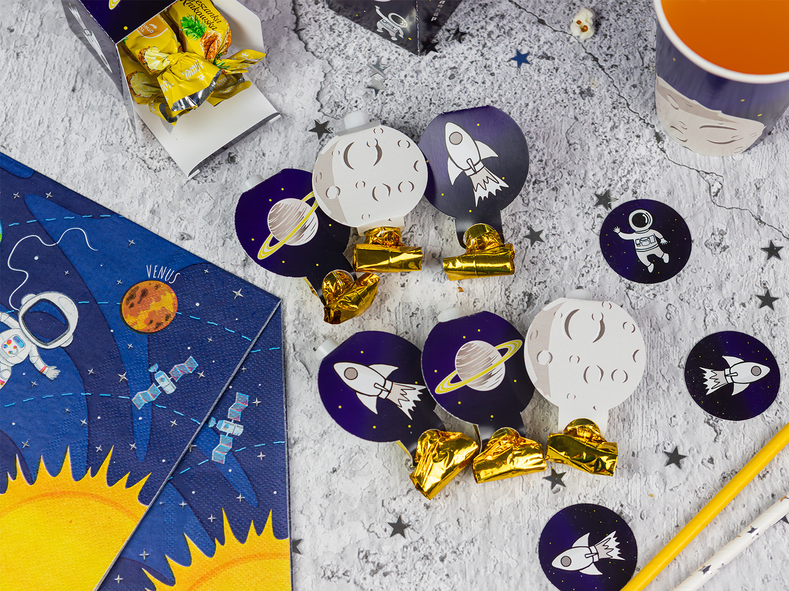 • A trombita sípok kibontakoznak egy űr-témában. A sípok tökéletesek mind a gyermekek, mind a felnőttek számára minden párt számára.