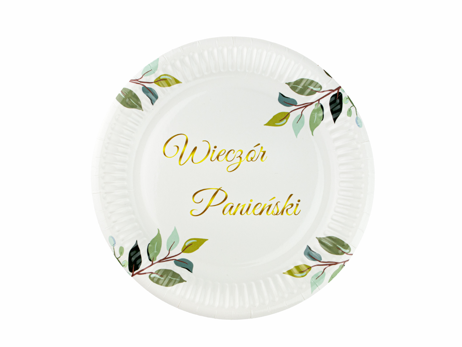 Papírtányérok lánybúcsúhoz zöld levelekkel - 18 cm - 6 db.