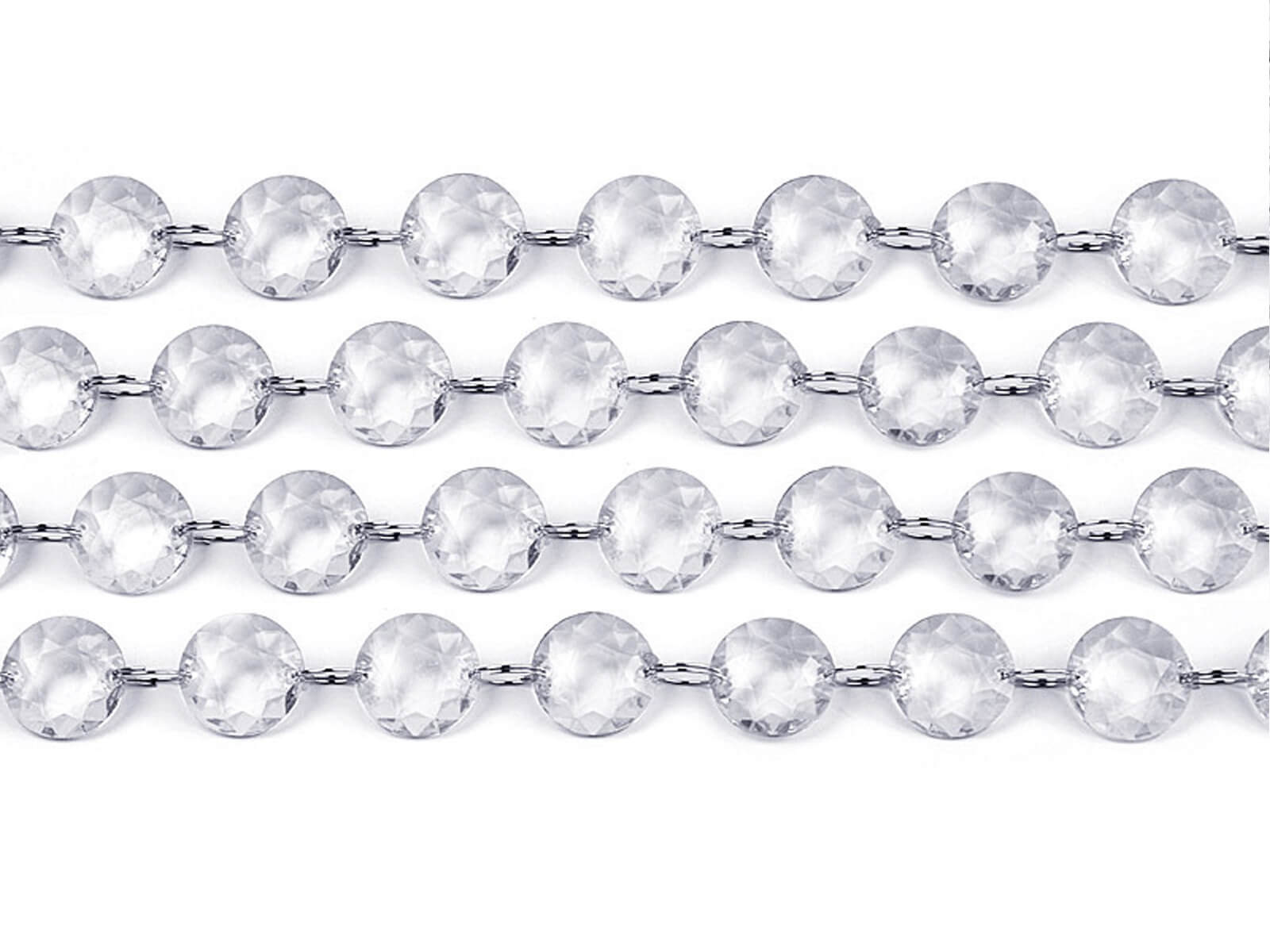 A lánc 1 m hosszú és az egyes kristálykörök átmérője 18 mm.