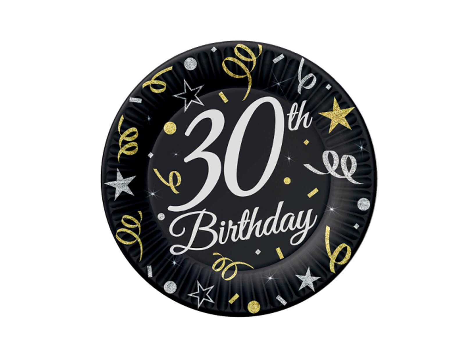 Harmincadik születésnapi papírtányér fekete - 18 cm - 6 db.