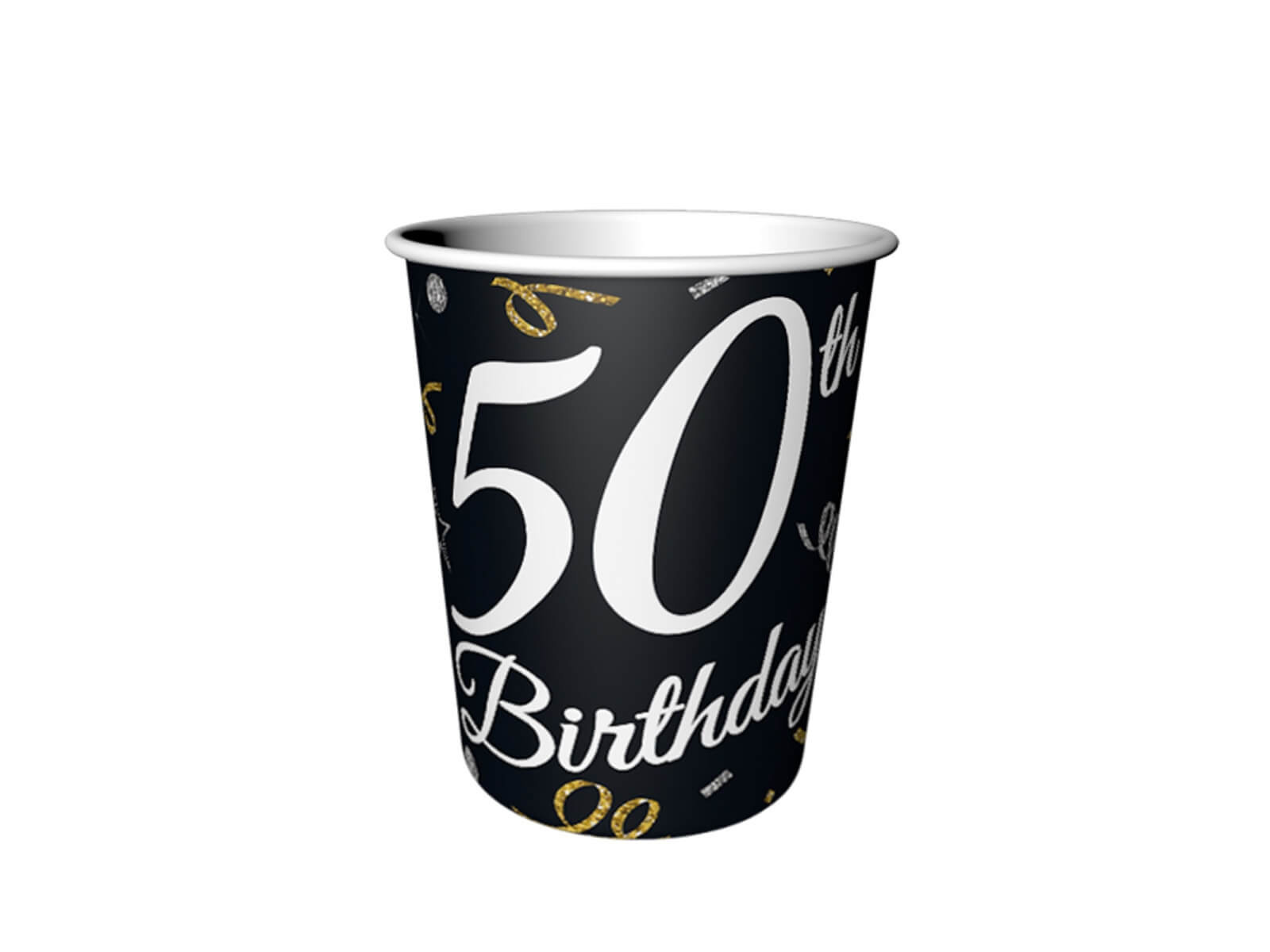 Ötvenedik születésnapi papírpoharak fekete - 250 ml - 6 db.
