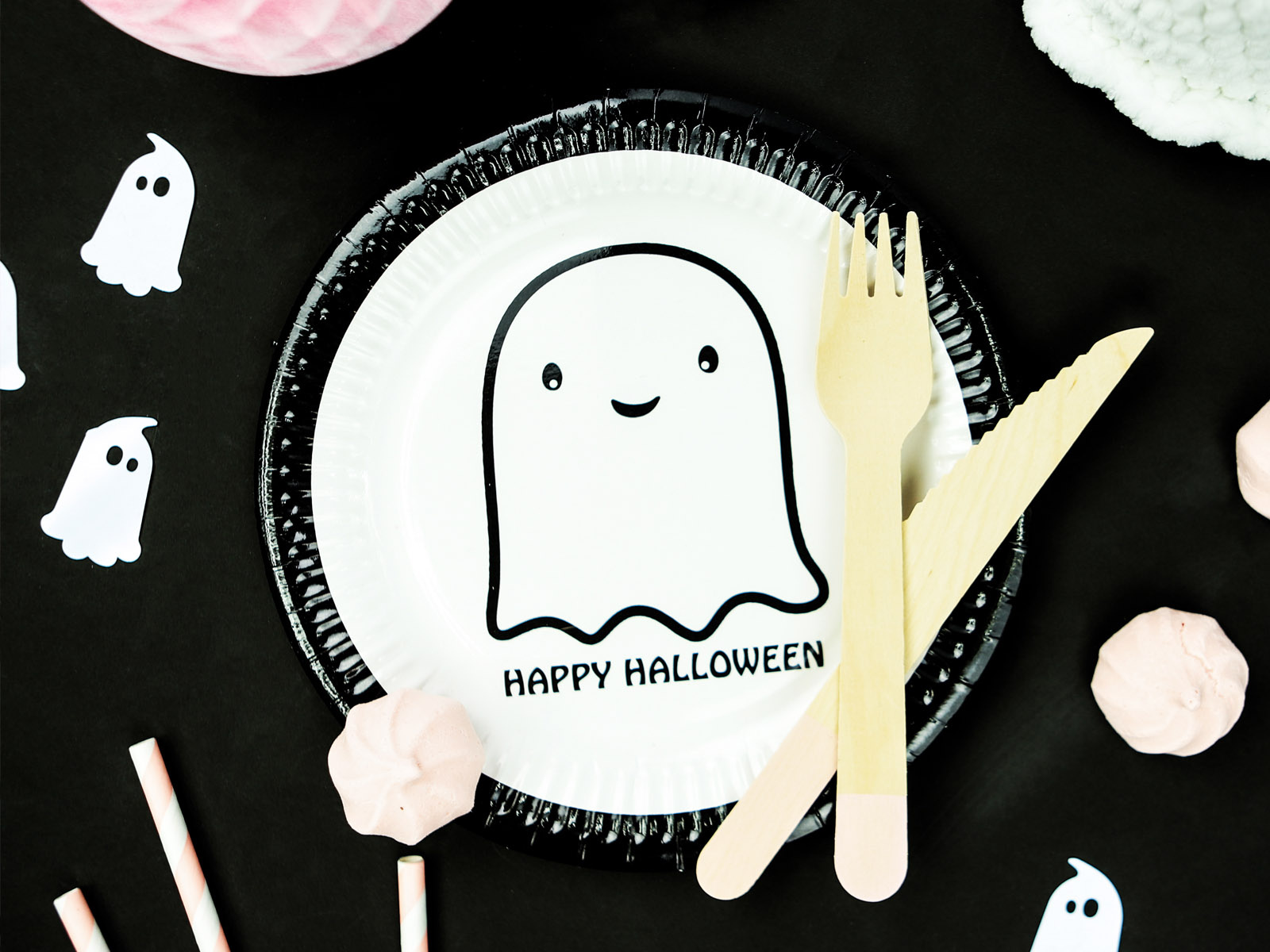 Halloween papírtányér Vidám szellem - 18 cm - 6 db.