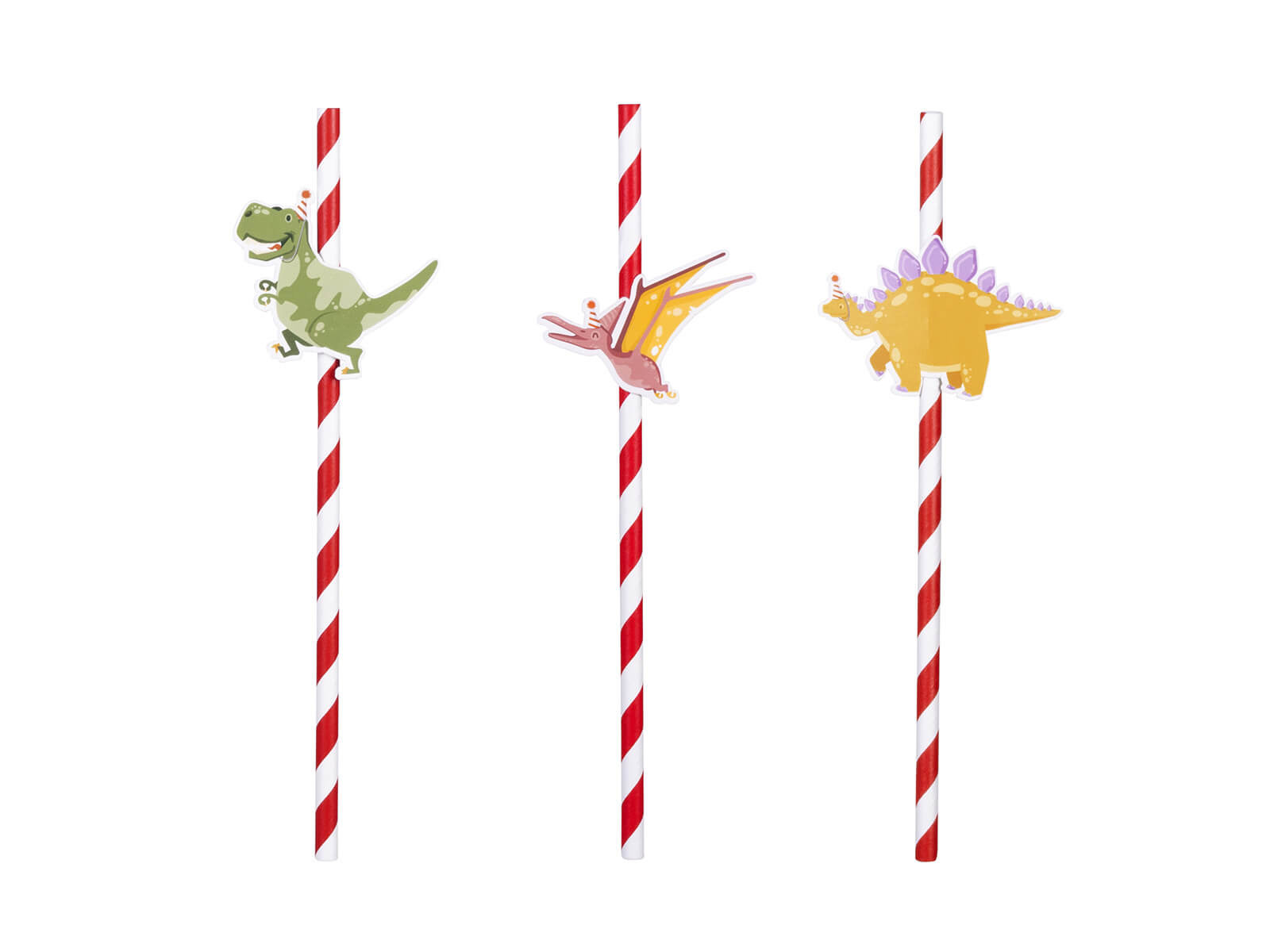 Dino Party papír szívószálak - 20 cm - 6 db.