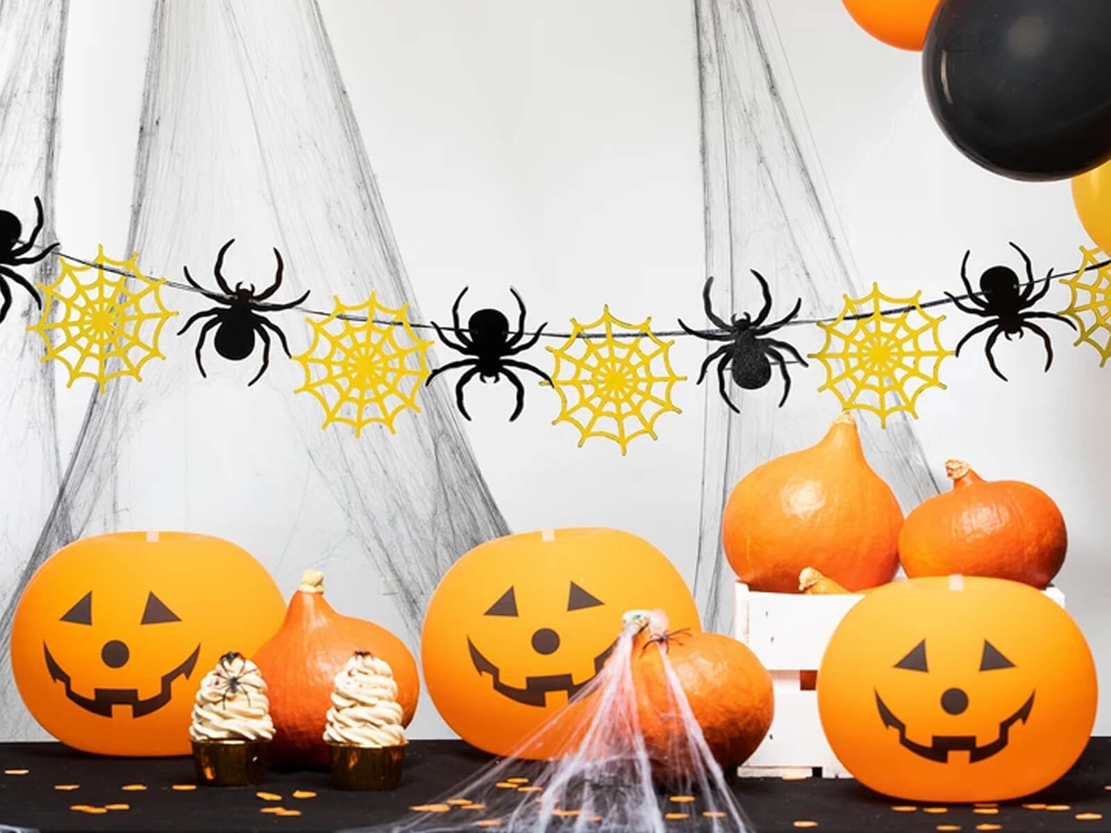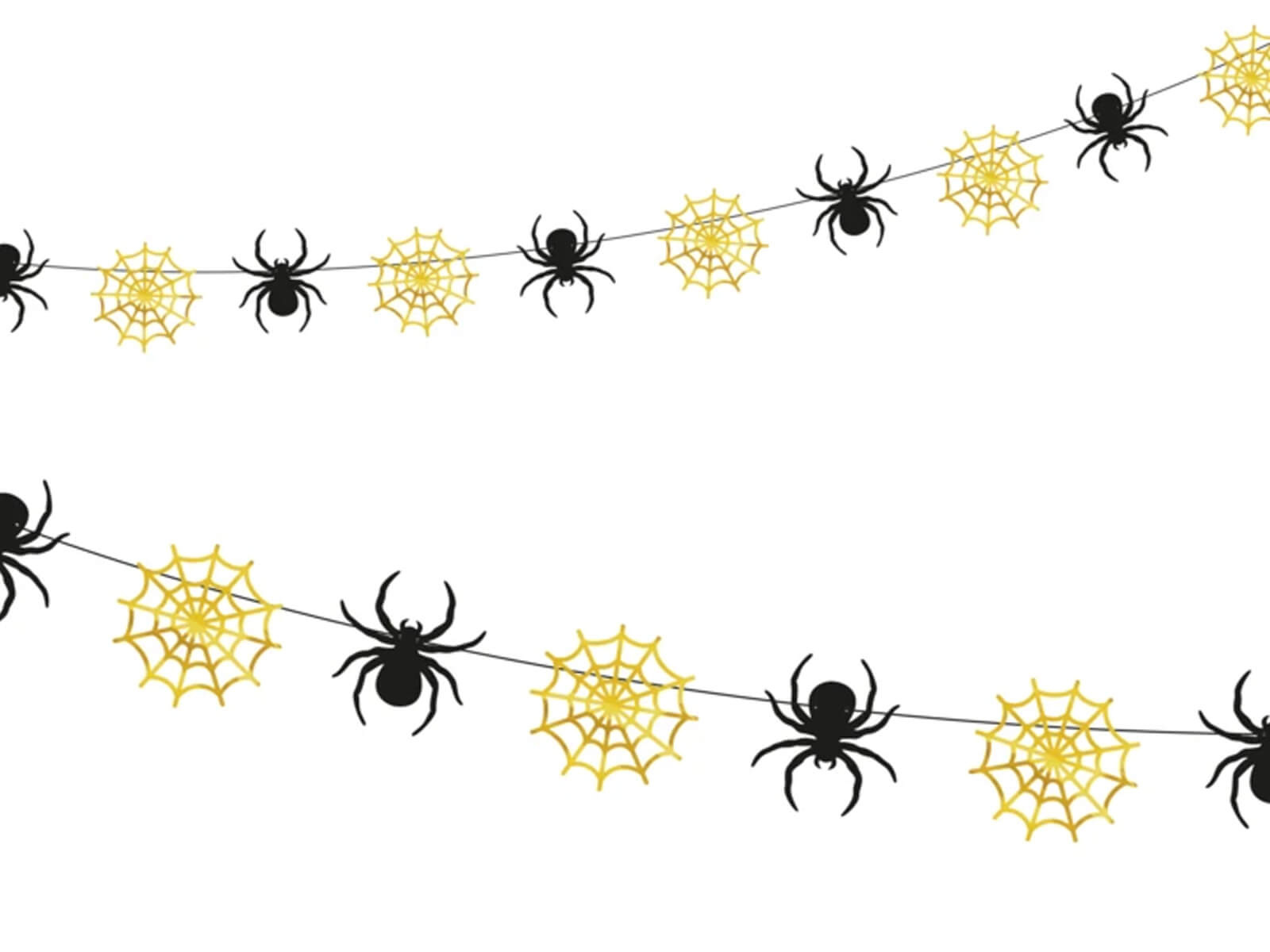 Örvendeztesse meg vendégeit idén halloweenkor a mi Pókhálók és pókok füzérrel. Ennek az egyedi dekorációnak minden egyes darabja a részletekre való odafigyeléssel készült. Arany pókhálók mérése 15.8 cm x 15,8 cm kombinálva fekete, valósághűnek tűnő pókokkal 13.5 cm x 15 cm félelemmel teli hangulatot kölcsönöz bármelyik szobának.