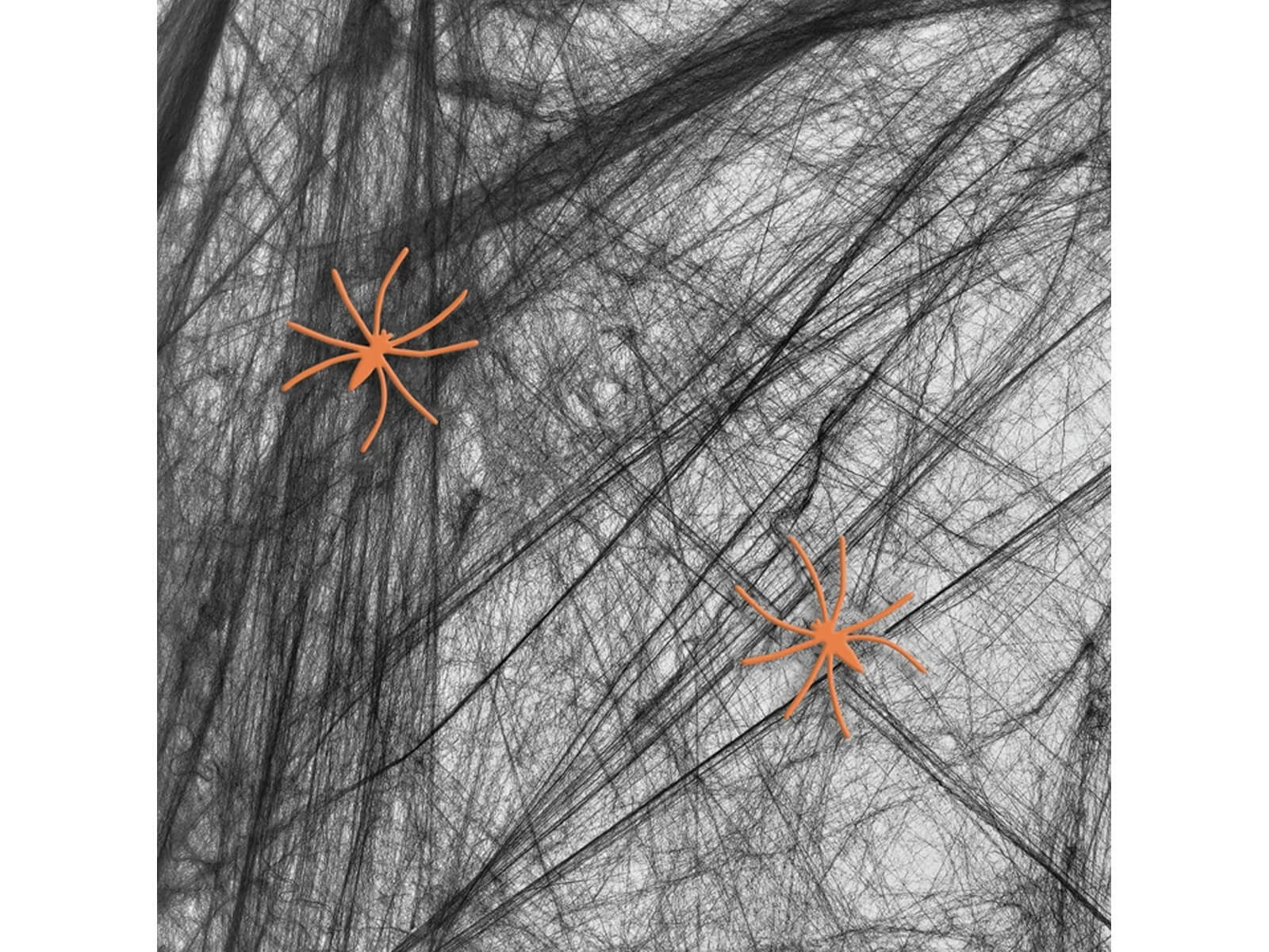 • Fekete pókháló narancssárga pókokkal. A tökéletes dekoráció Halloweenre.