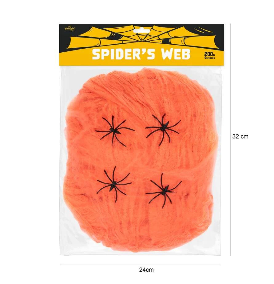 Narancssárga pókháló pókokkal Halloweenre - 200 g - 1 op.