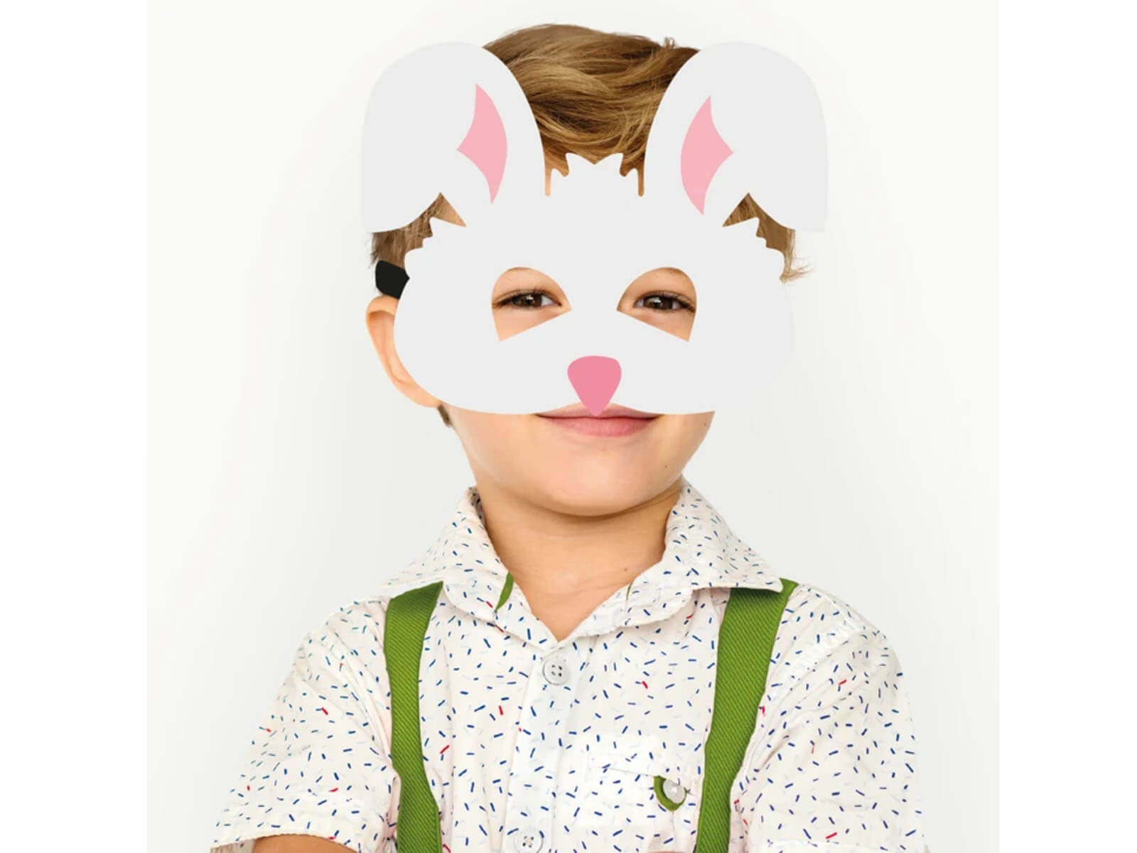 • Nemez nyuszi maszk, a fej hátsó részéhez gumiszalaggal rögzítve. Ideális karneválokhoz.