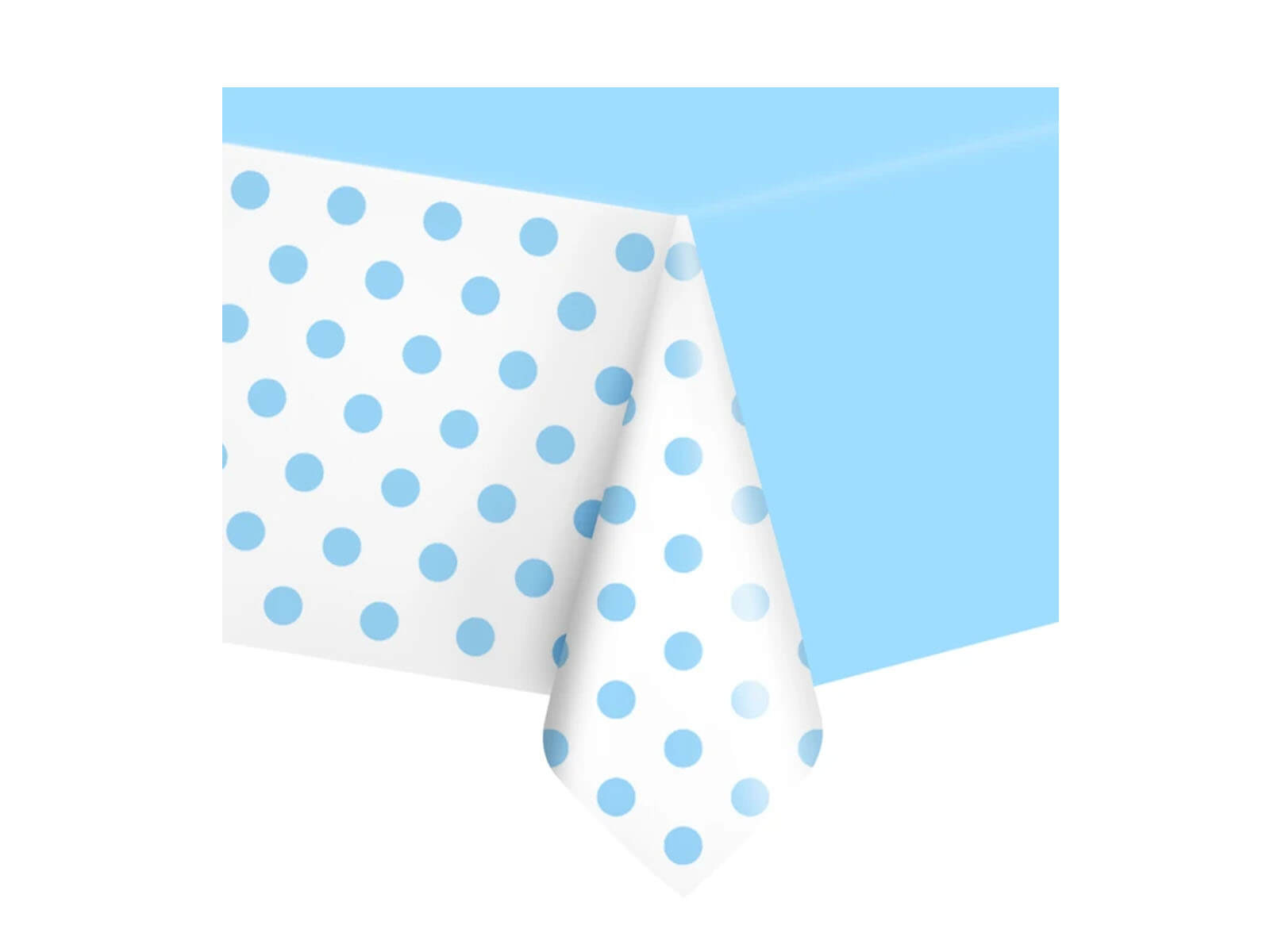 Kék pöttyös születésnapi terítő - 137 x 274 cm - 1 db.
