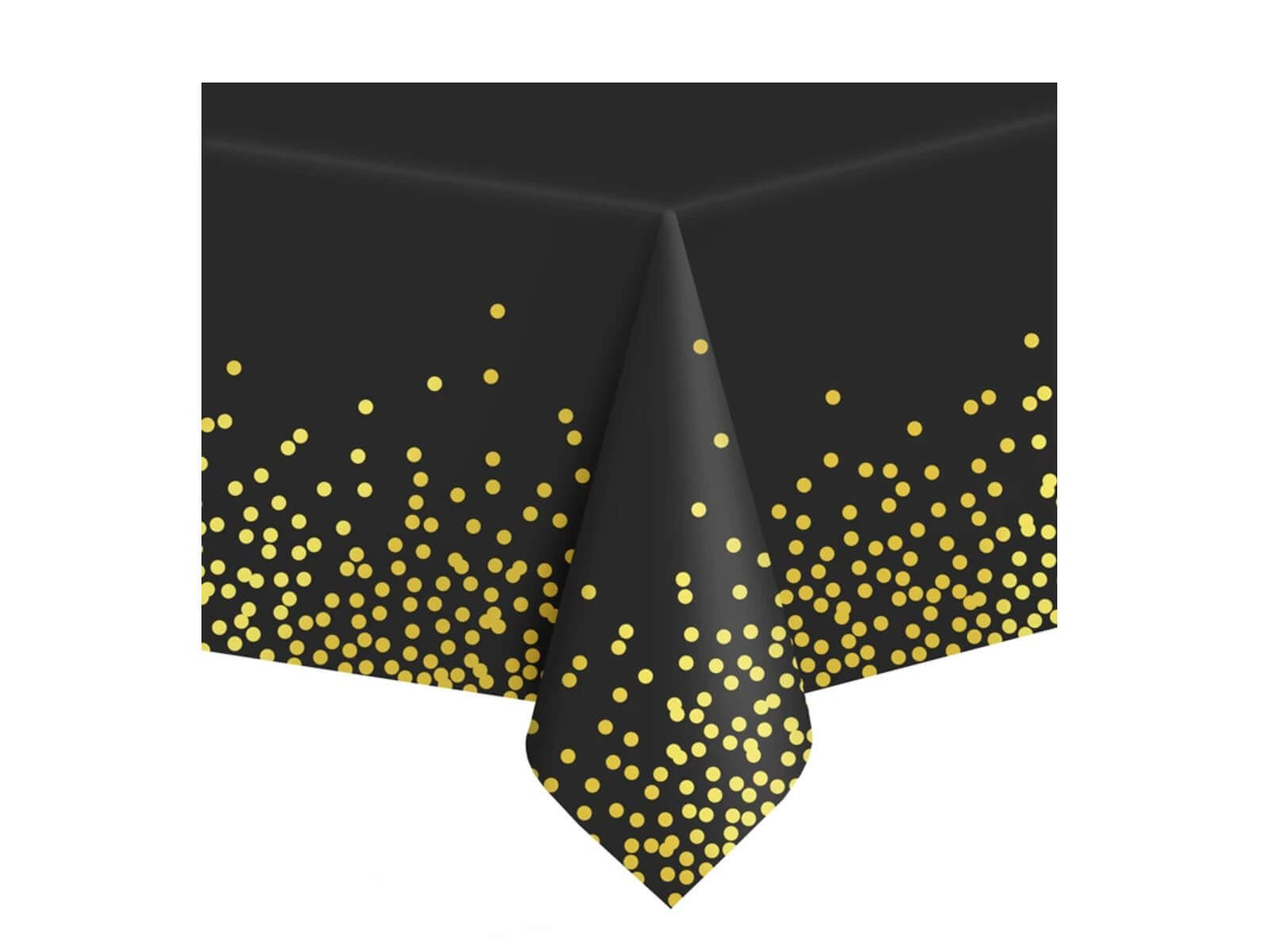 Születésnapi terítő fekete arany pöttyökkel - 137 x 274 cm - 1 db.