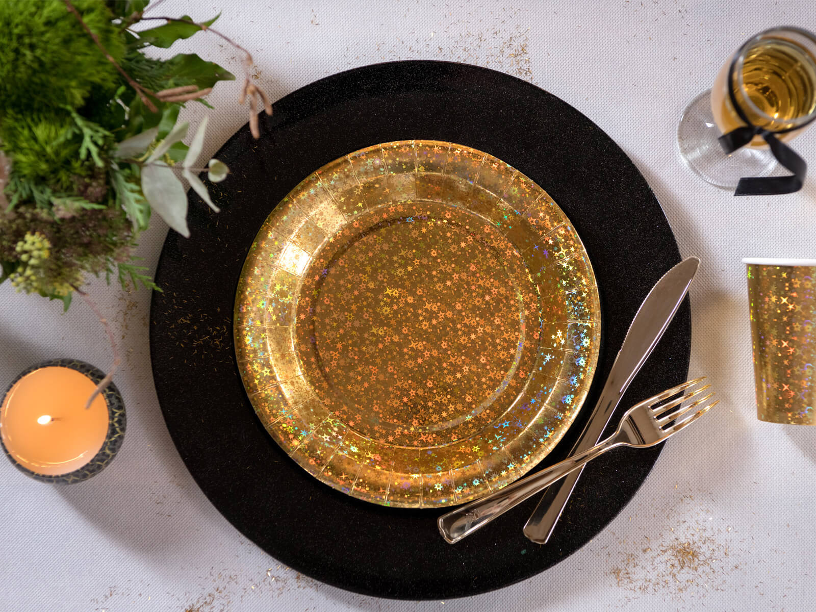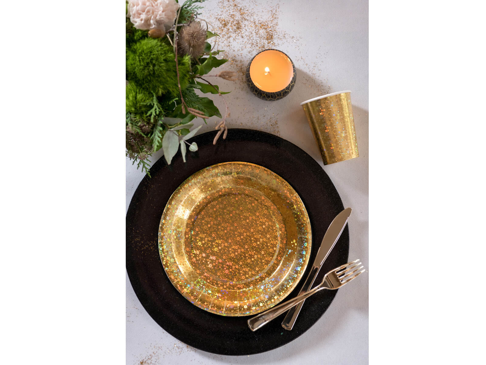 Arany holografikus papírtányérok - 22,5 cm - 10 db.