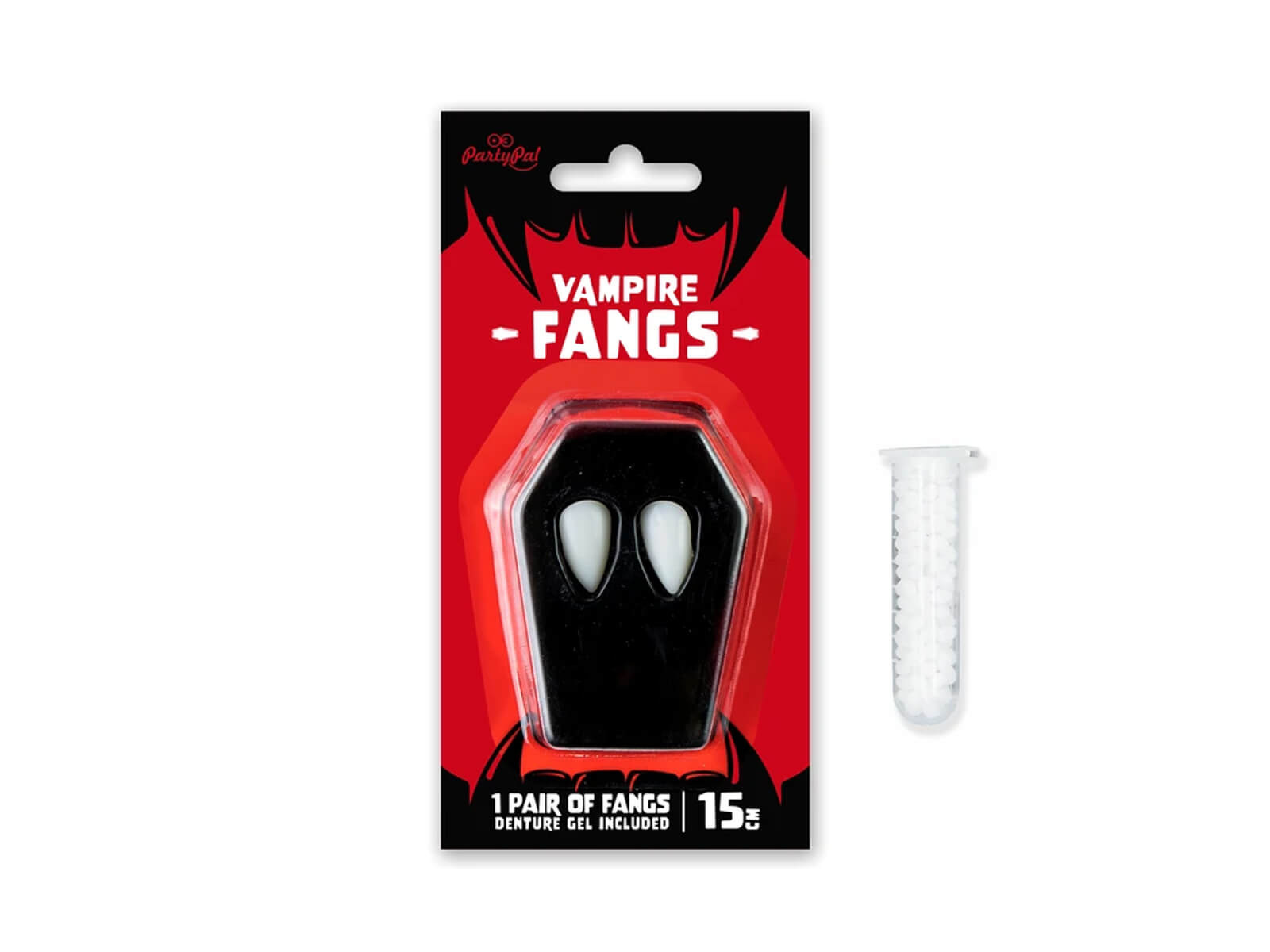 Változz át igazi vámpírrá, és lepj meg mindenkit a Halloween-partidon!! A vámpír agyarak a tökéletes kiegészítő, hogy valósághűvé tegye a ruháját. A készletben két darab, egyenként 15 mm-es agyar található, amelyek biztonságos anyagokból készültek, és a mellékelt fogászati zselének köszönhetően könnyen felhelyezhetők.