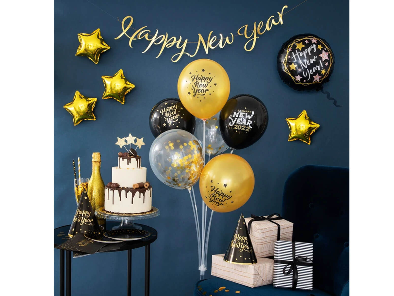 Üdvözölje az új évet egyedi stílusban! A fólia léggömb 45 cm átmérőjű, tökéletes dekoráció szilveszter estére. Elegáns fekete színben, csillogó csillagokkal és világos fehér betűkkel "Boldog új évet", ünnepi hangulatot kölcsönöz minden térnek.